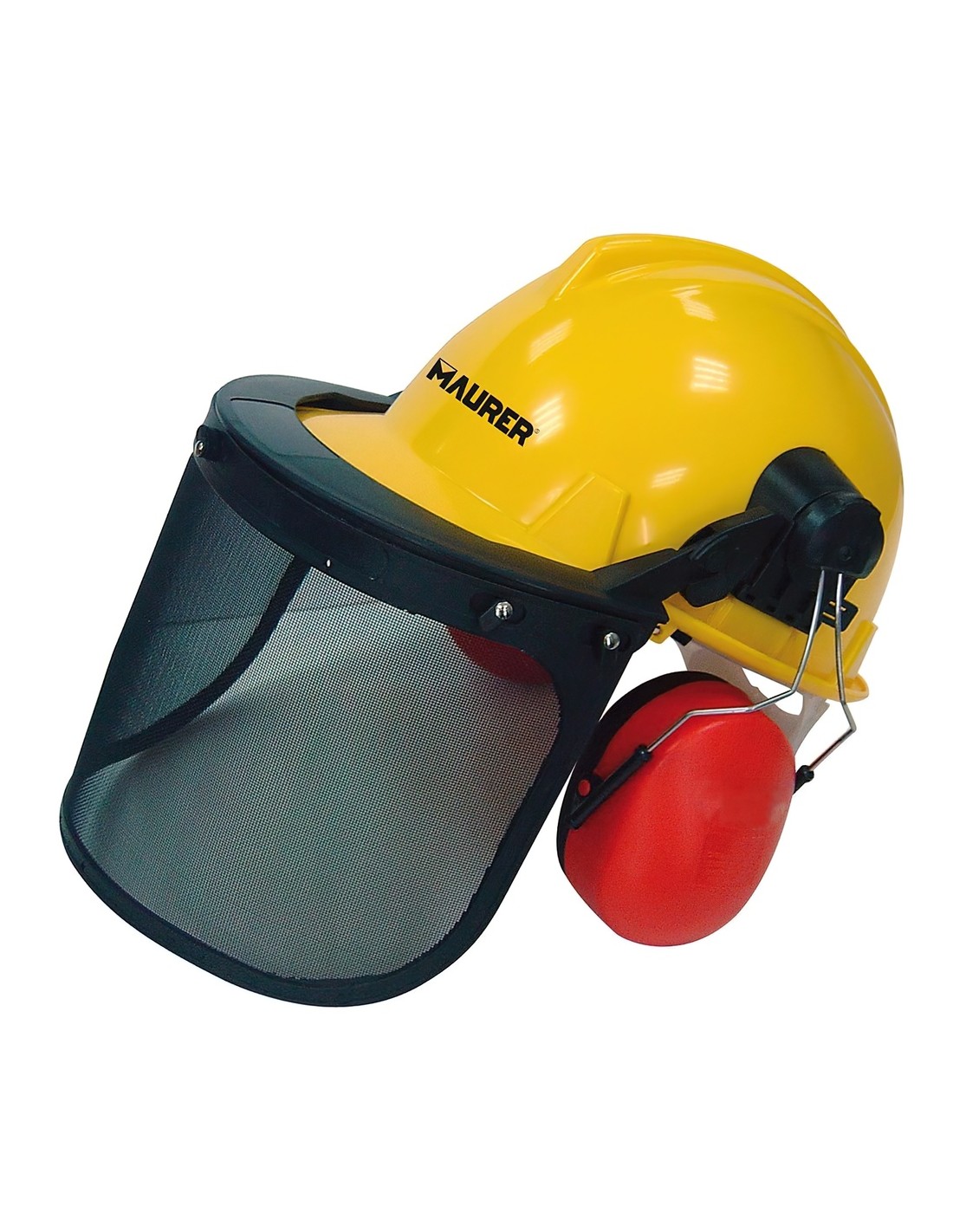 Casco Con Visera, protector facial y Protector Auditivo - Protector facial abatible. - Con protector auditivo ajustable y con almohadillas. - Ideal para trabajos de jardinera o poda.