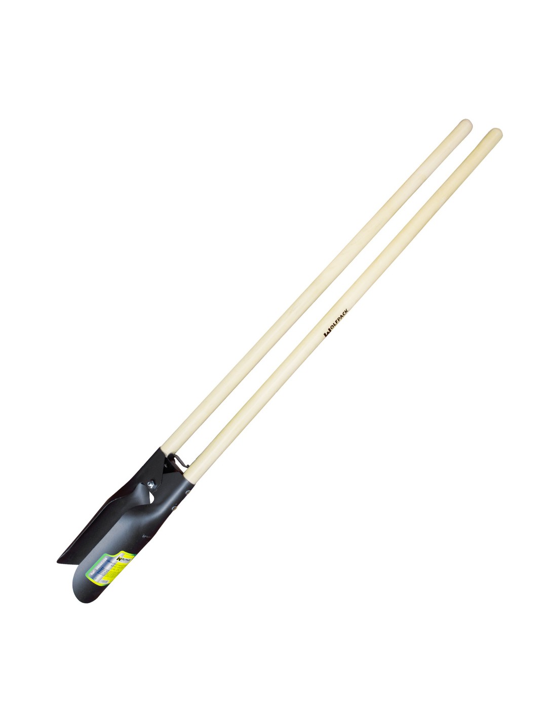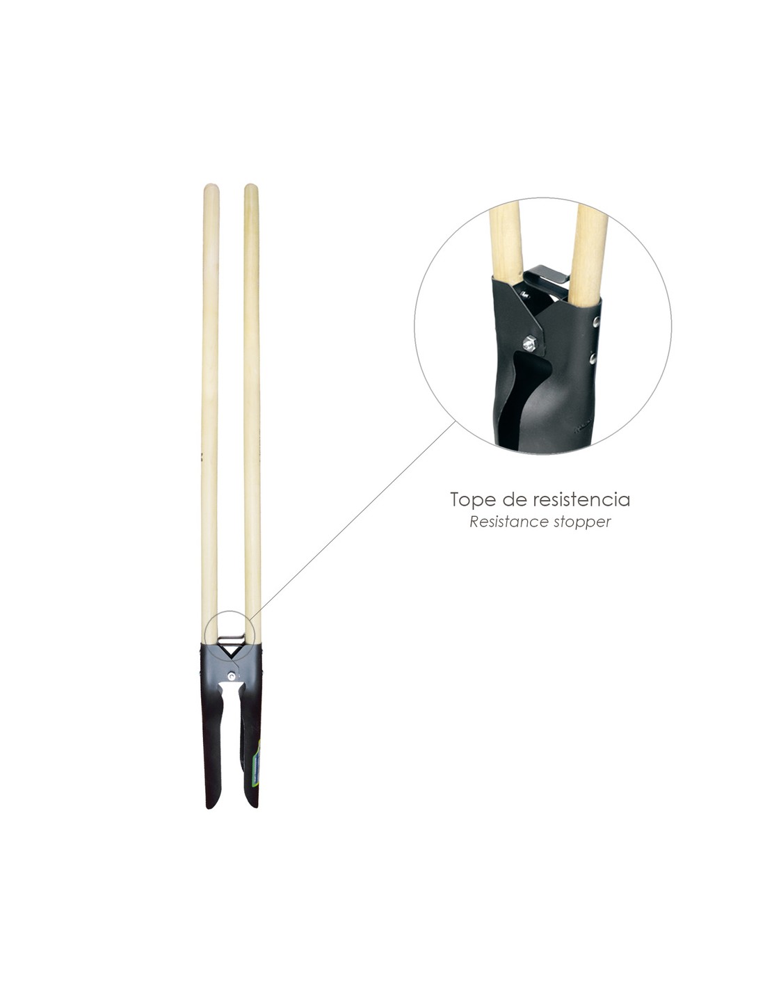 - Plantadora o perforadora cavahoyos con mangos de madera y hojas de acero forjado, para la realización de agujeros y extracción de la tierra.