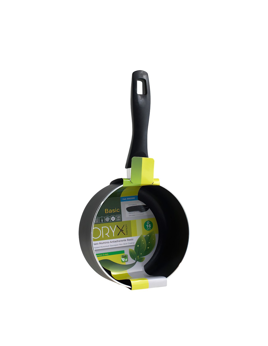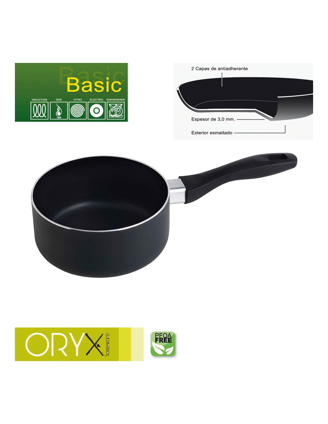 Cazo Aluminio Antiadherente Basic. - Diametro: 16 cm. - 3 mm. de espesor. - Doble capa antiadherente. - Libre de PFOA. - Valido para cocinas de gas, vitro, inducción. - Se puede lavar en el lavavajilas.