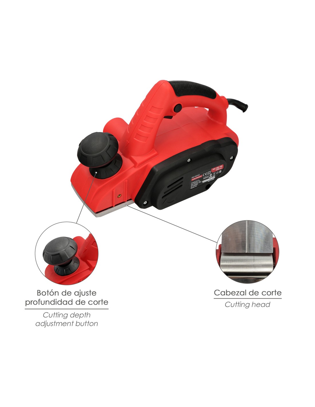 Cepilladora Electrica 710 Watt. Ancho Corte 82 mm. Profundidad 2 mm. Base Aluminio / Acero Cepillo Electrico Madera Carpintero