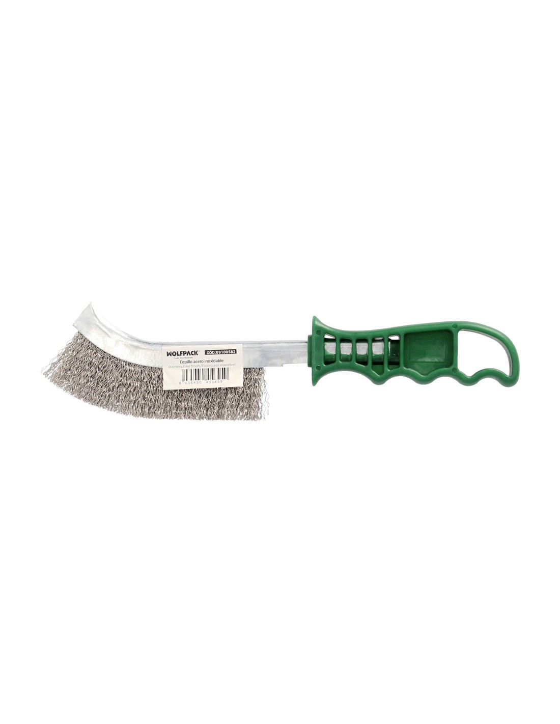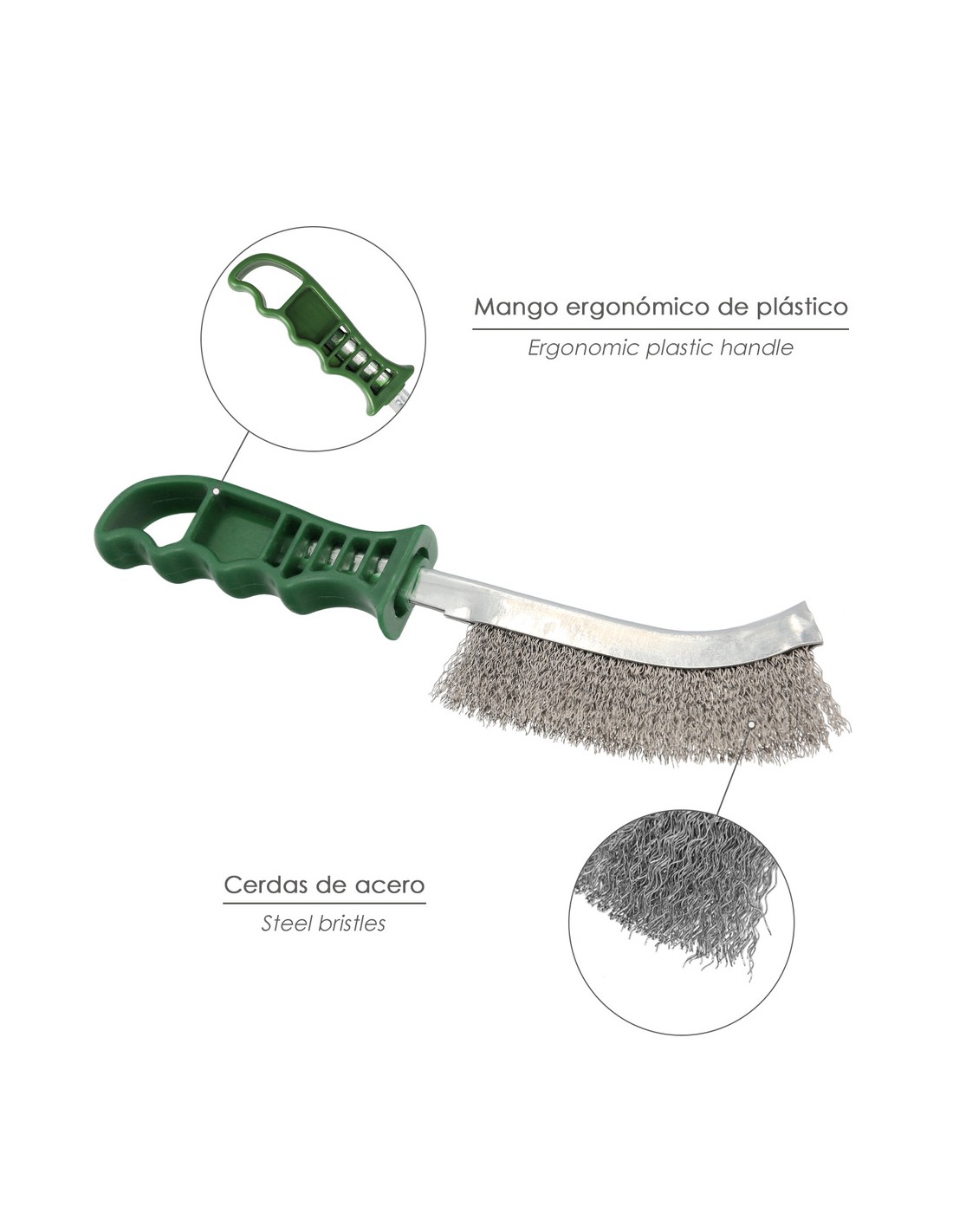 Cepillo Acero Inoxidable Mango Verde 25 cm. Cepillo Eliminación Oxido, Pintura, Pulido De Metales.