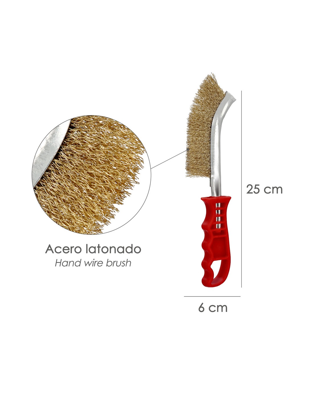 Cepillo Acero Latonado Mango Rojo 25 cm. cepillo Eliminación Oxido, Pintura, Pulido De Metales.