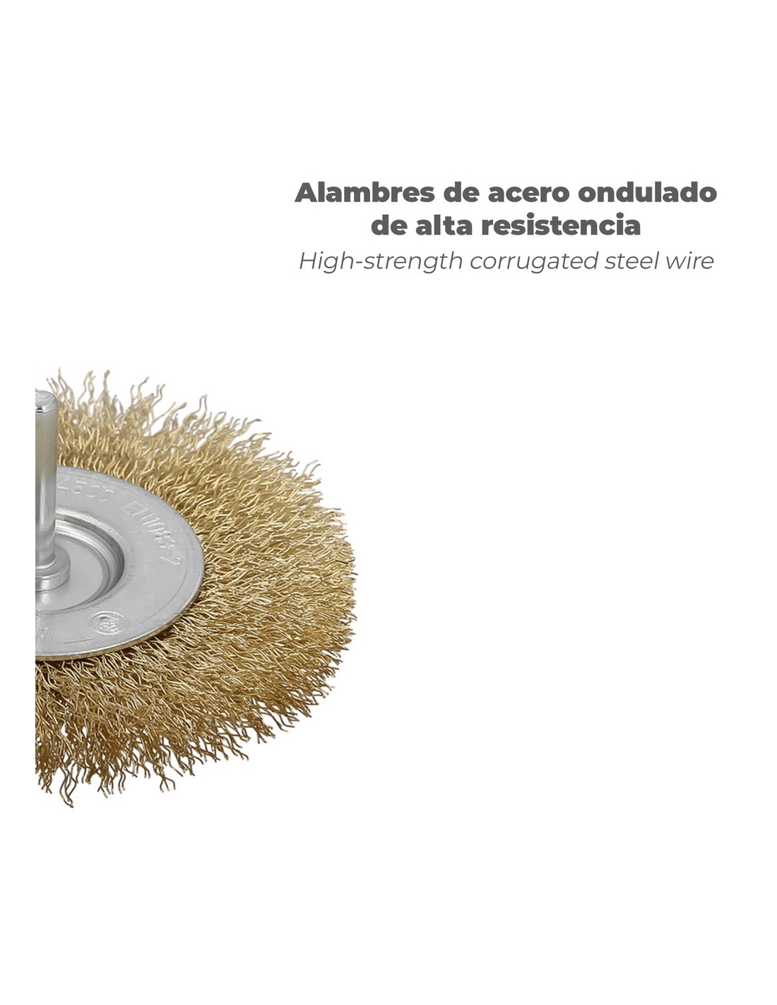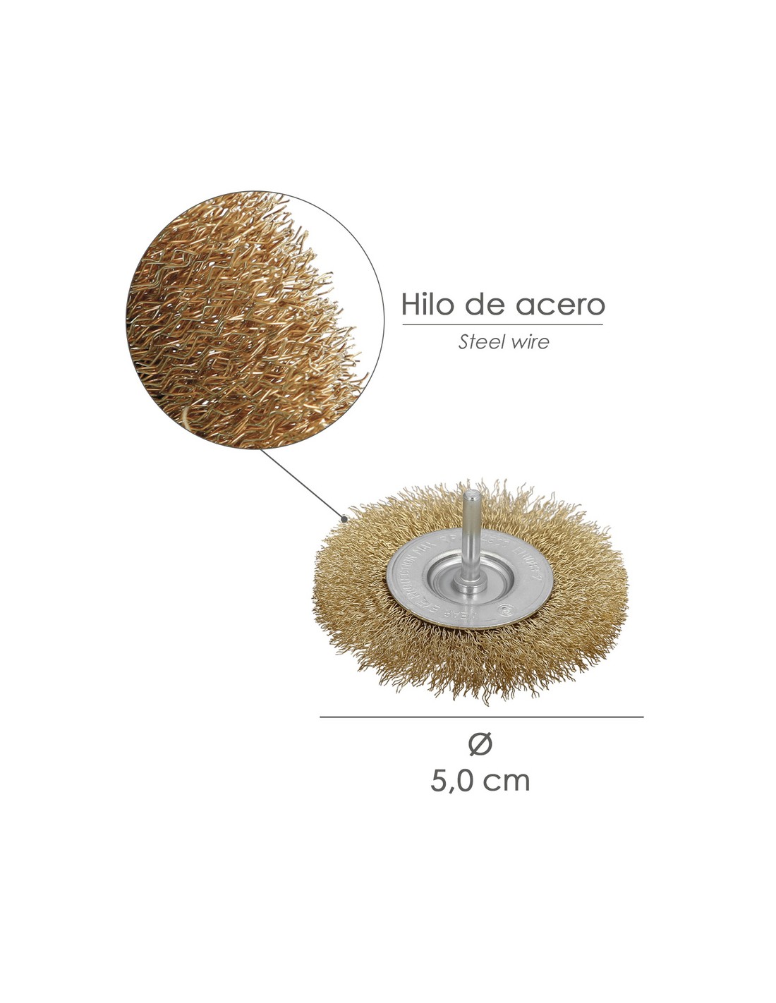 Cepillo Acero Latonado Para Taladro. Disco Ø 50 mm. Espiga 1/4" Cepillo Taladro Alambre Latón, Cepillo Limpieza, Cepillo Pulir.