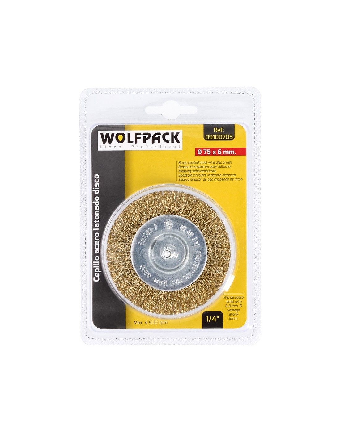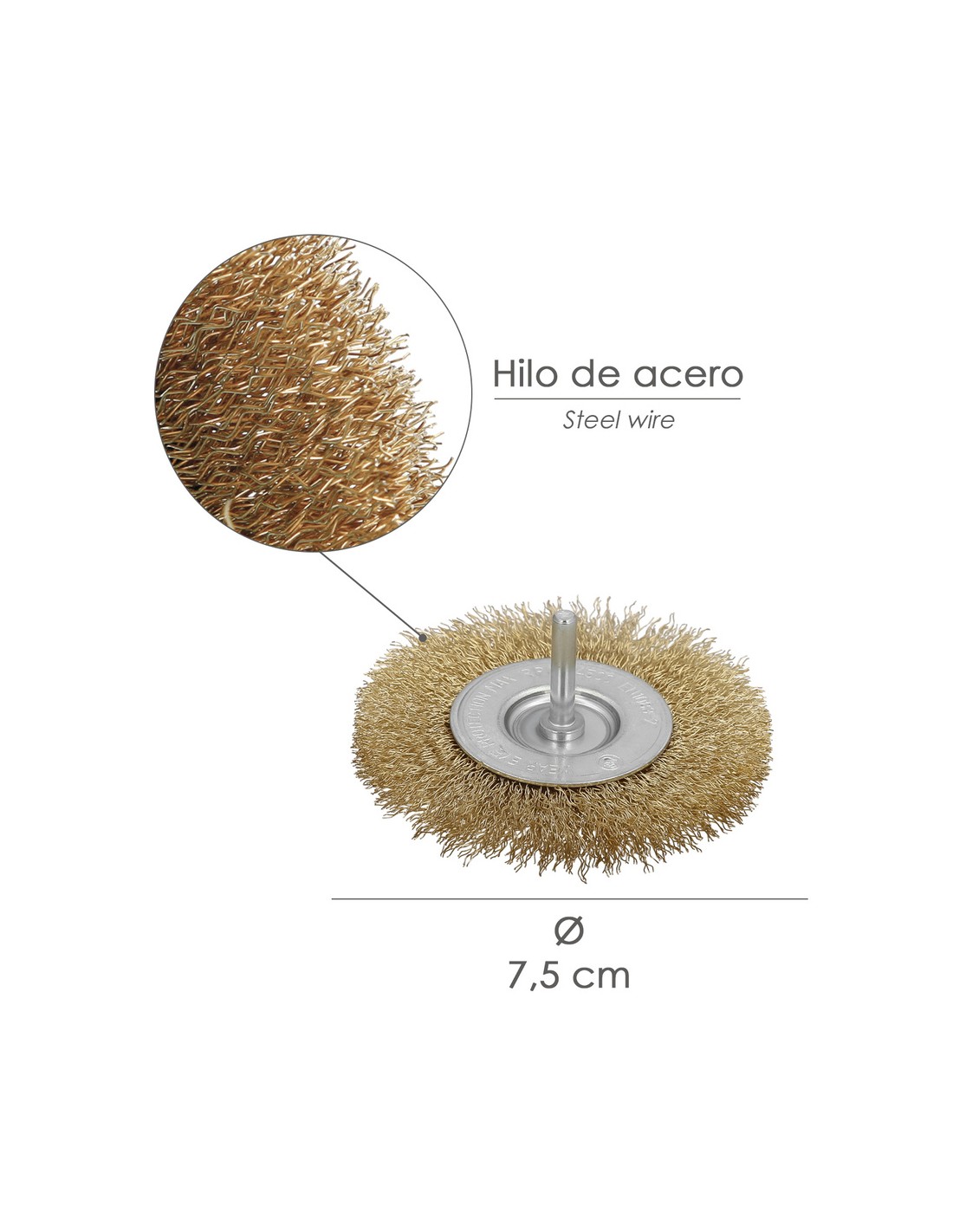 Cepillo Acero Latonado Para Taladro. Disco Ø 75 mm. Espiga 1/4" Cepillo Taladro Alambre Latón, Cepillo Limpieza, Cepillo Pulir.