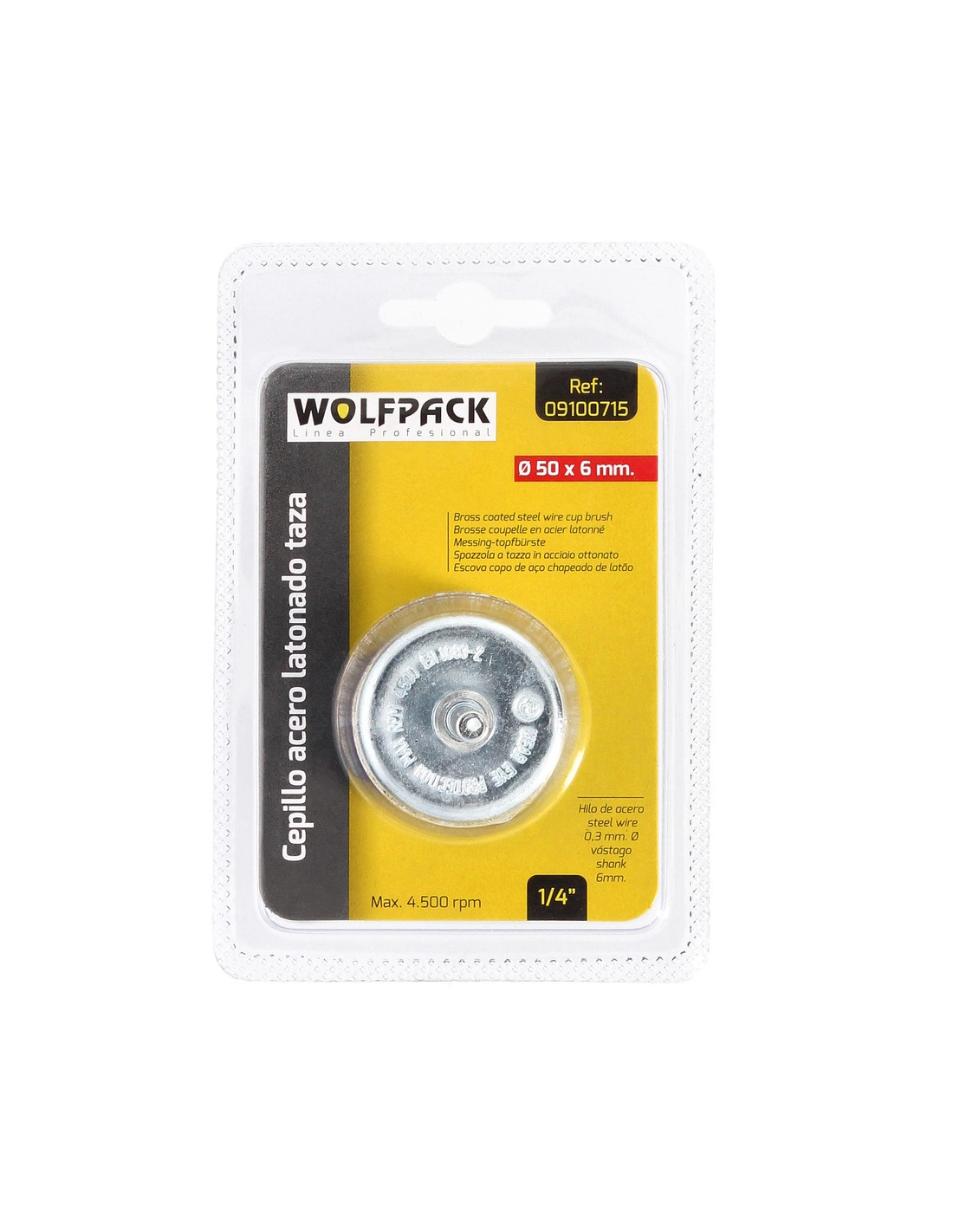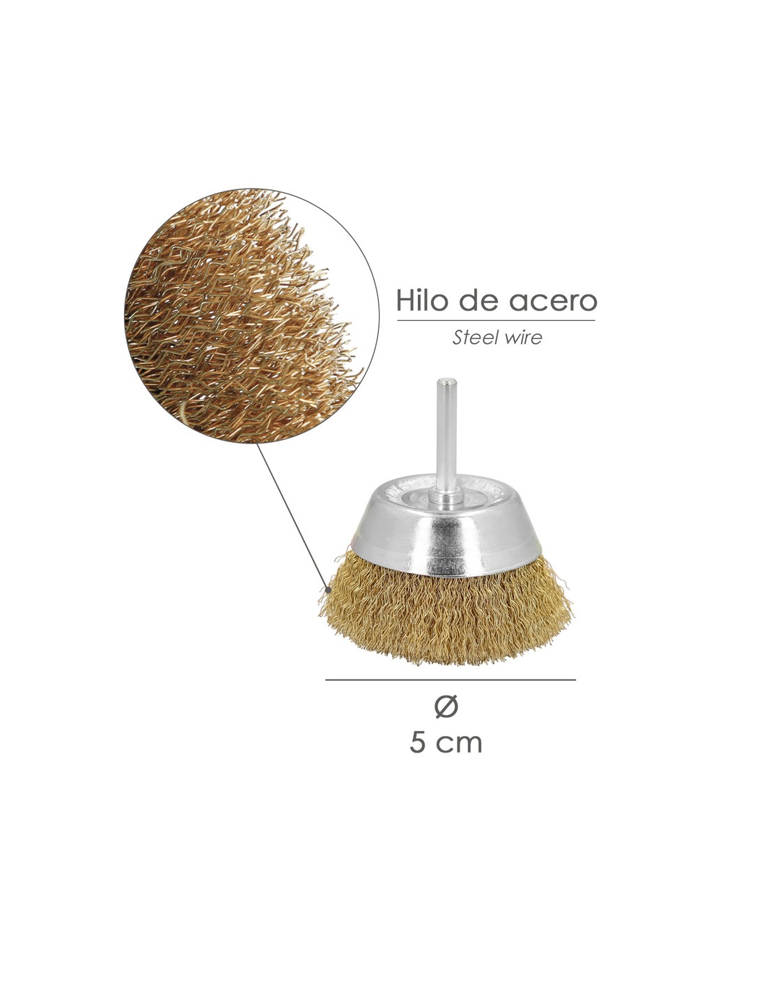 Cepillo Acero Latonado Para Taladro Taza Ø 50 mm. Espiga 1/4" Cepillo Taladro Alambre Latón, Cepillo Limpieza, Cepillo Pulir.