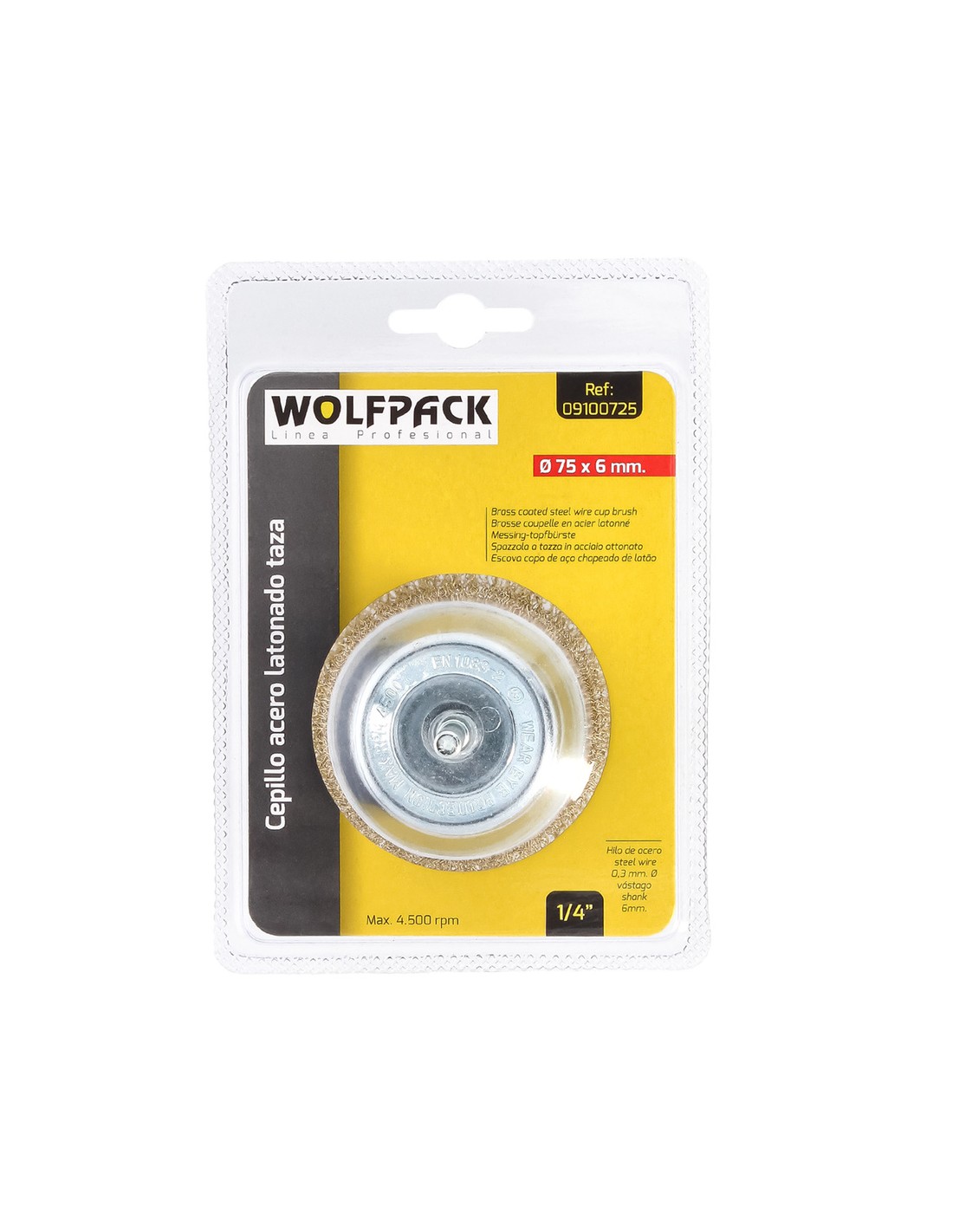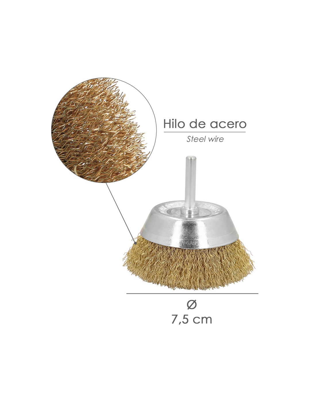 Cepillo Acero Latonado Para Taladro Taza Ø 75 mm. Espiga 1/4" Cepillo Taladro Alambre Latón, Cepillo Limpieza, Cepillo Pulir.
