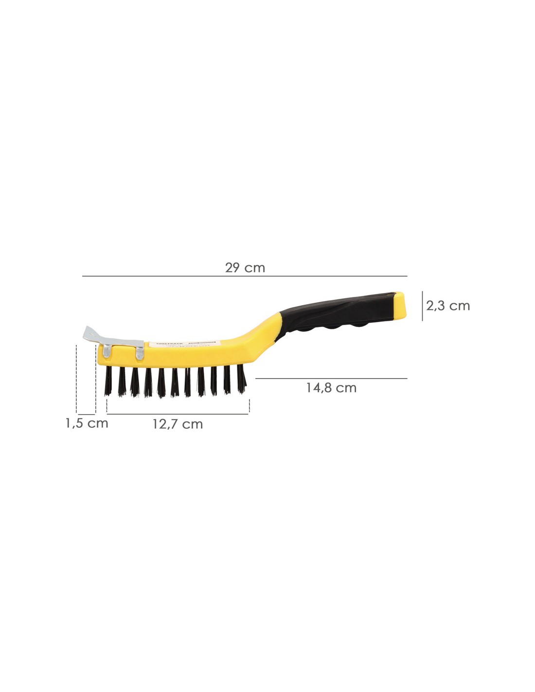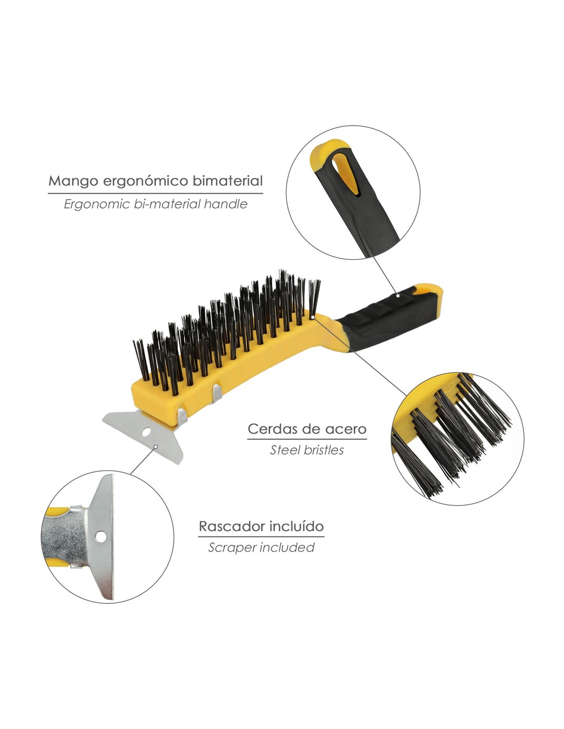 - Artículo también conocido como cepillo para hierro, cepillo rascador, cepillo de puas, cepillo de cerdas, cepillo para hierro