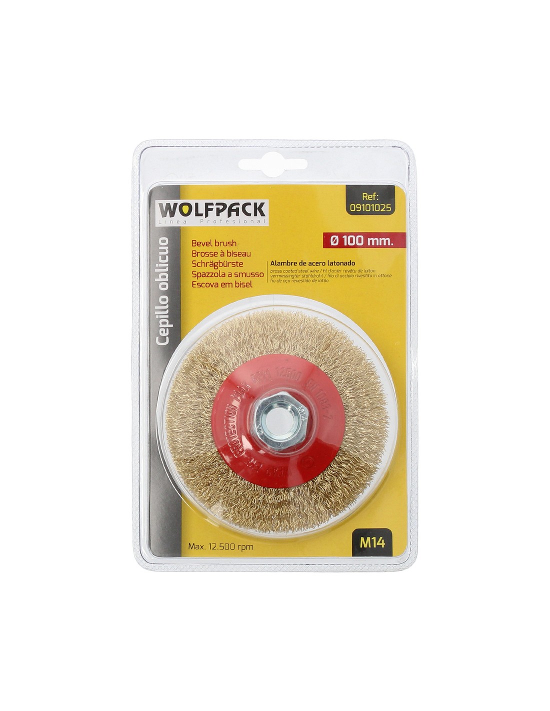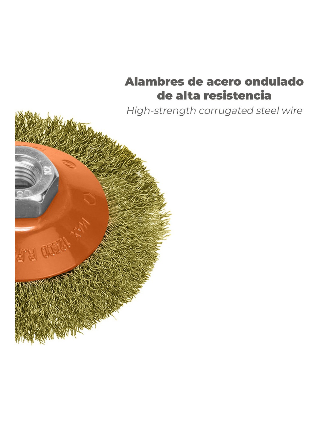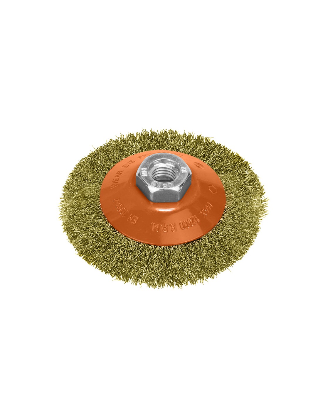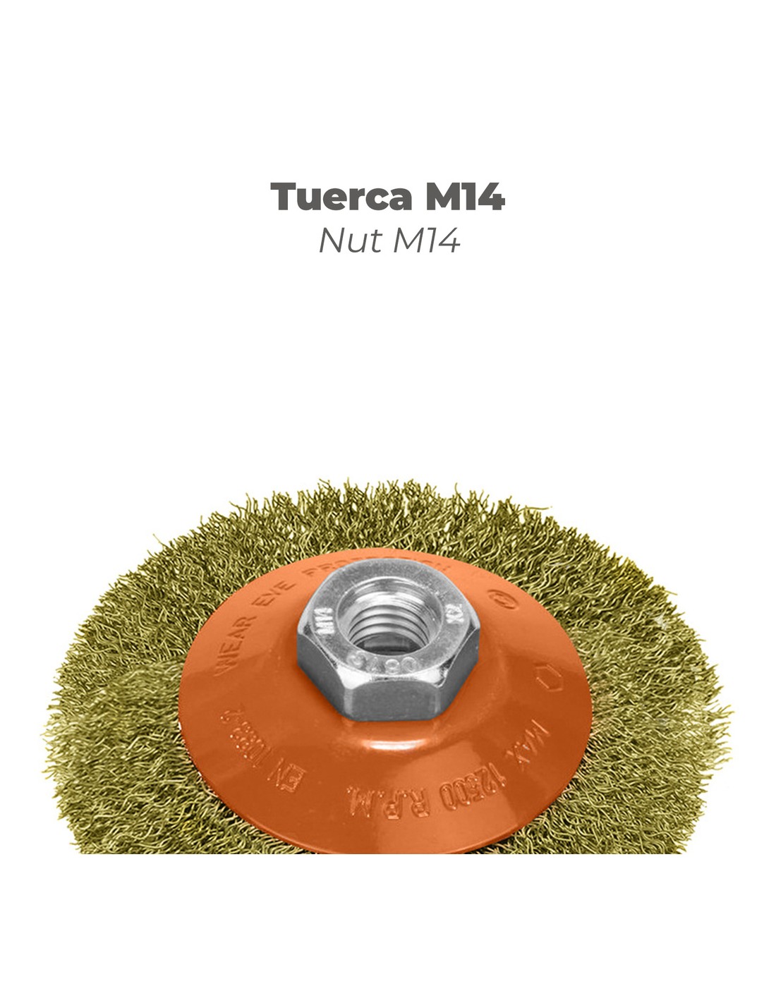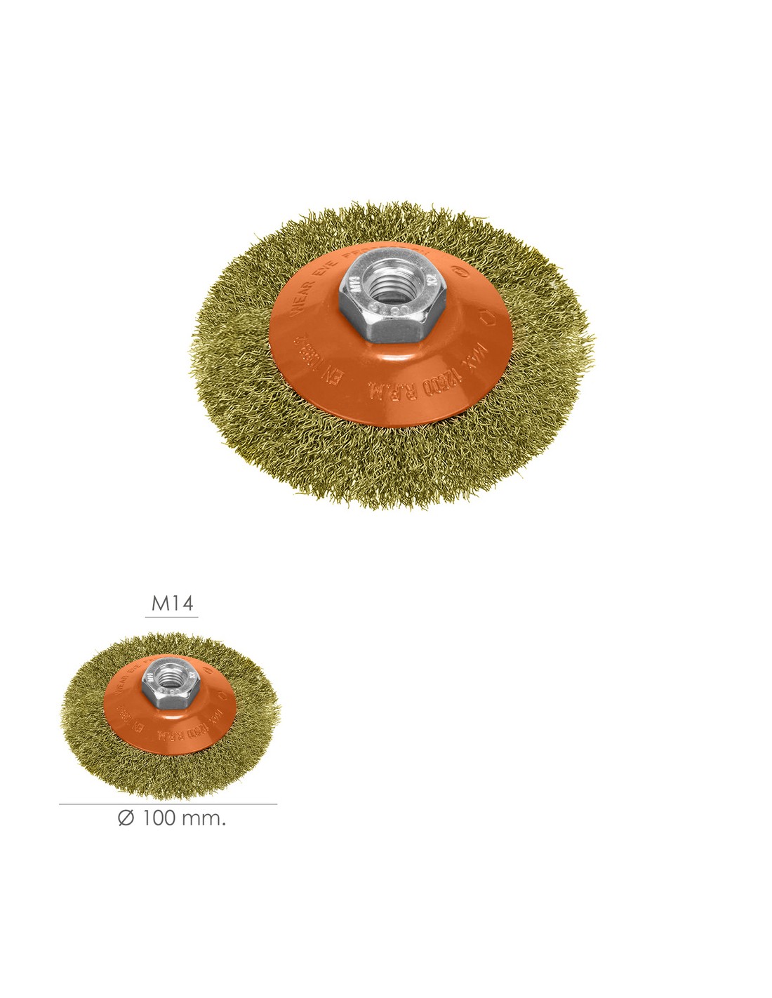 Cepillo Oblicuo Con Alambre De Acero Latonado Rosca M14, Ø 100 mm. Alambre de Ø 0,30 mm.