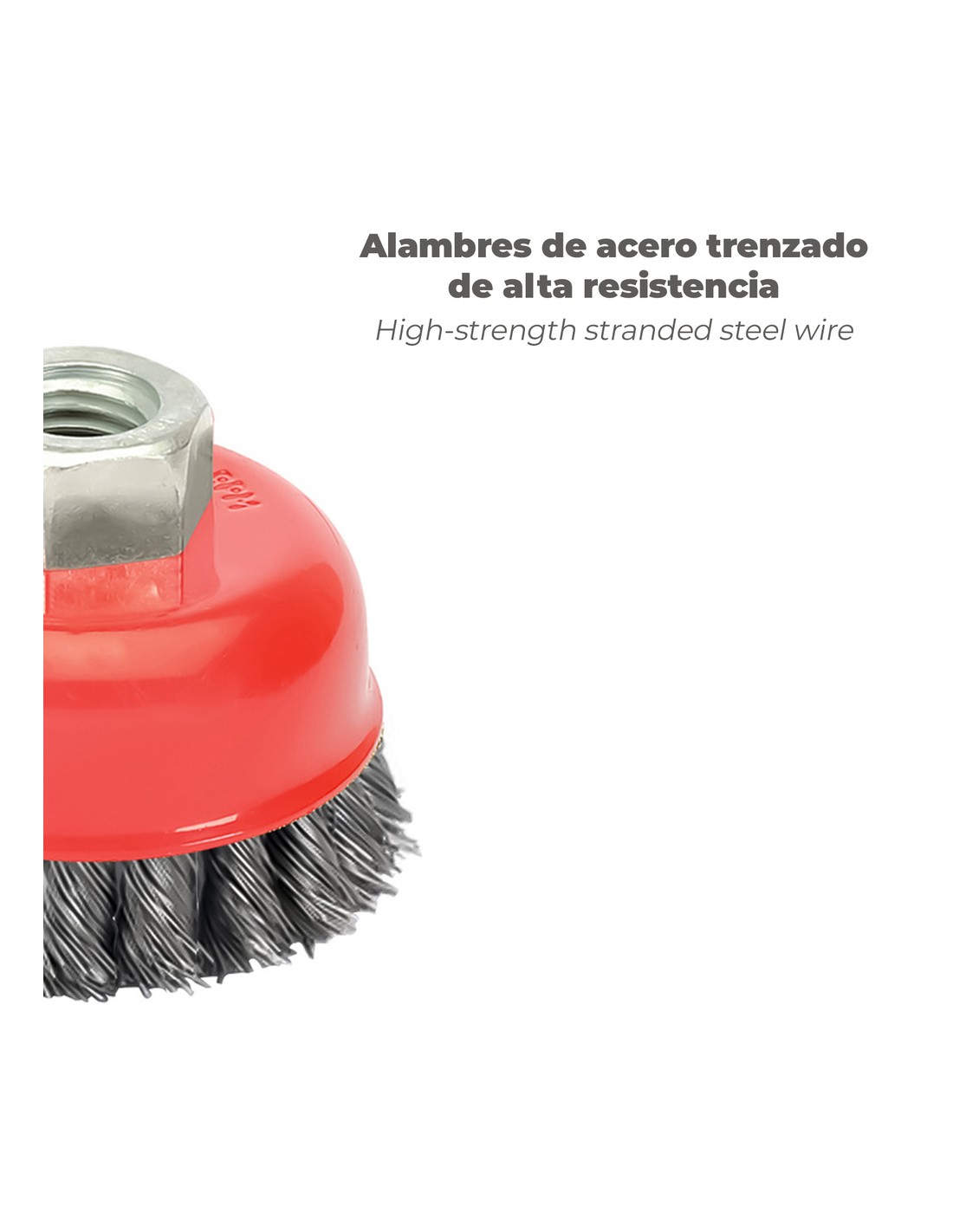- Cepillo taza de alambre fabricado en acero trenzado. Resistente y duradero.