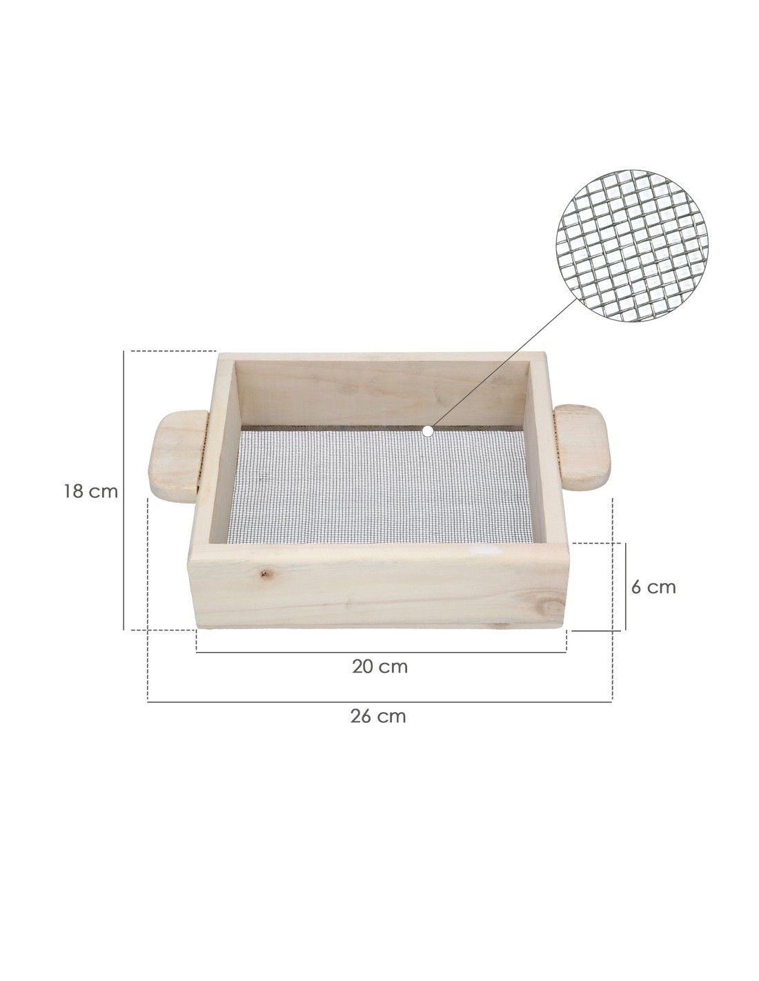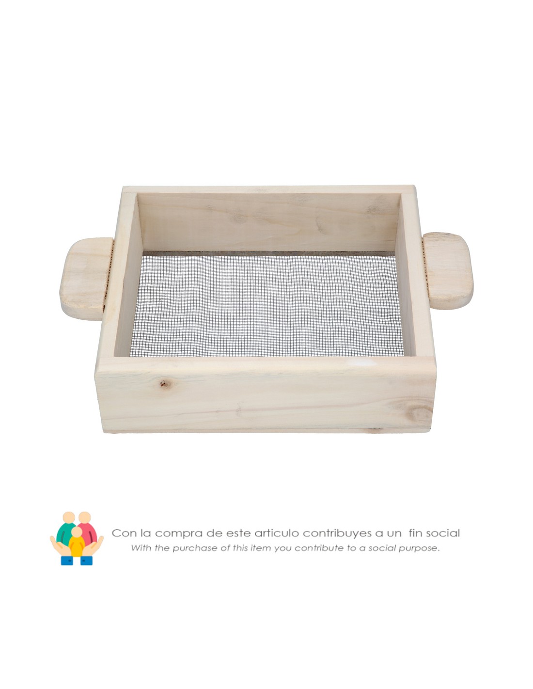 Harinador harinero cernedero - Realizado en madera. - Ideal para trabajos gastronómicos. - Color marrón claro. - Ideal para enharinar,rebozar o empanar alimentos.
