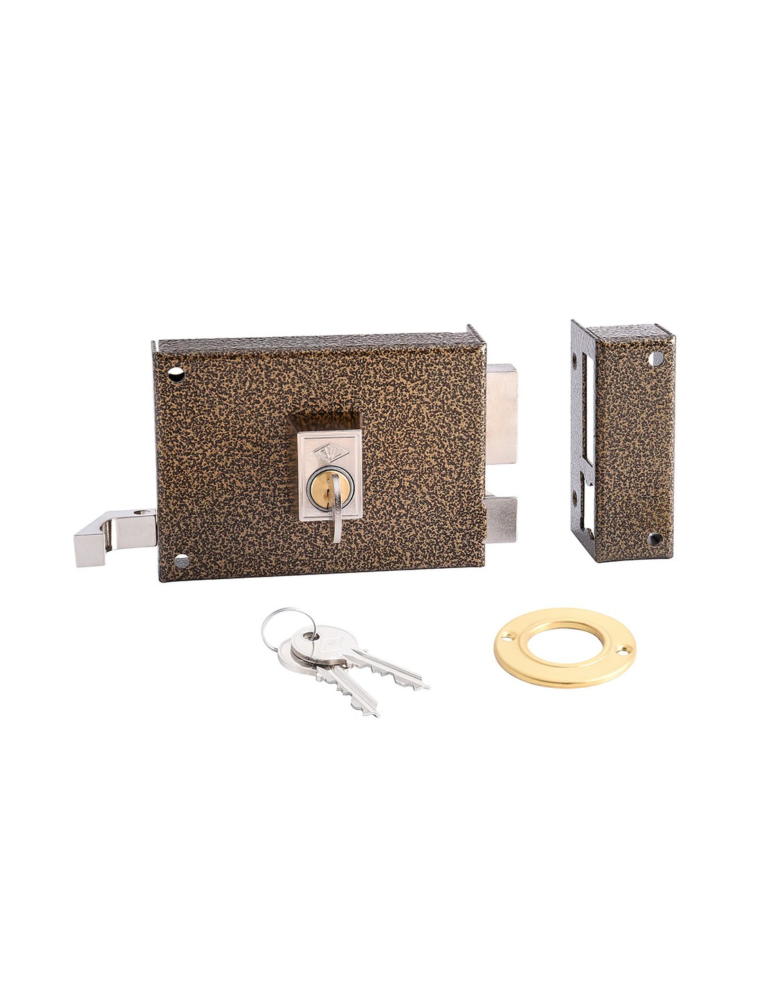 Cerradura Cvl1125a/ 12/he derecha. - Cerradura de sobreponer. - Palanca de dos vueltas de llave accionable por ambos lados - Picaporte accionado por llave exteriormente y con llave y tirador desde el interior. - Cilindro redondo. - Acabado hierro esmaltado