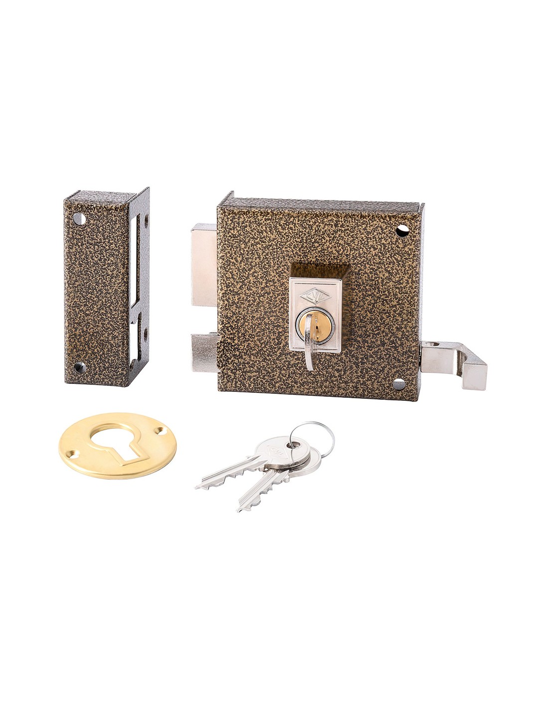 Cerradura Cvl 125a/ 8/he izquierda. - Cerradura de sobreponer. - Picaporte accionado por llave exteriormente y con llave y tirador desde el interior. - Palanca de dos vueltas de llave accionable por ambos lados - Acabado hierro esmaltado - Cilindro perfil.