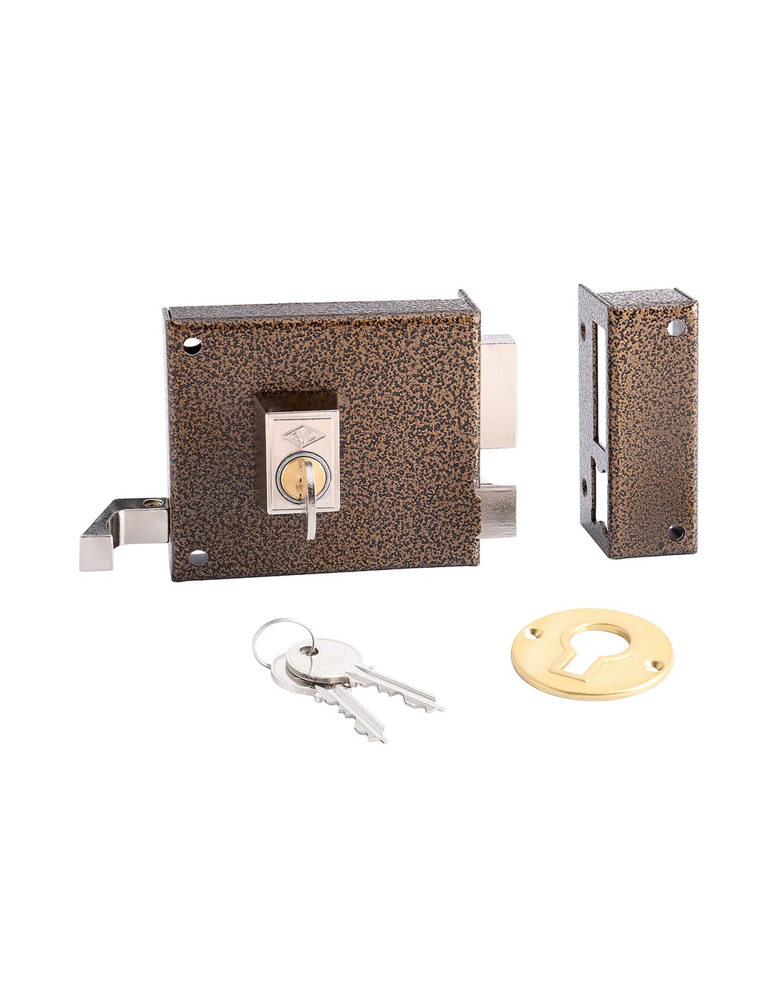 Cerradura Cvl 125ar/ 10/he derecha. - Cerradura de sobreponer. - Palanca de dos vueltas de llave accionable por ambos lados - Picaporte accionado por llave exteriormente y con llave y tirador desde el interior. - Cilindro perfil. - Acabado hierro esmaltado