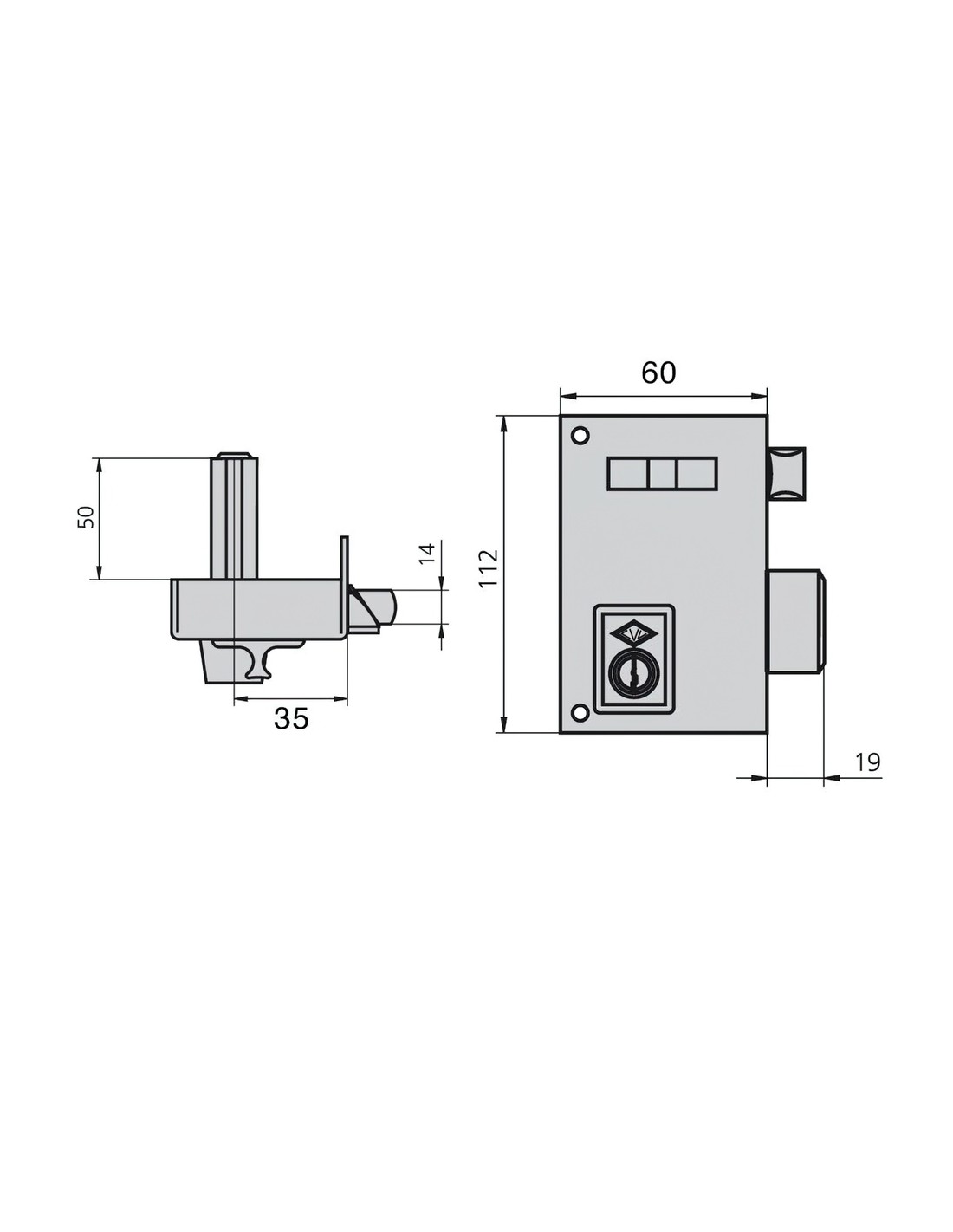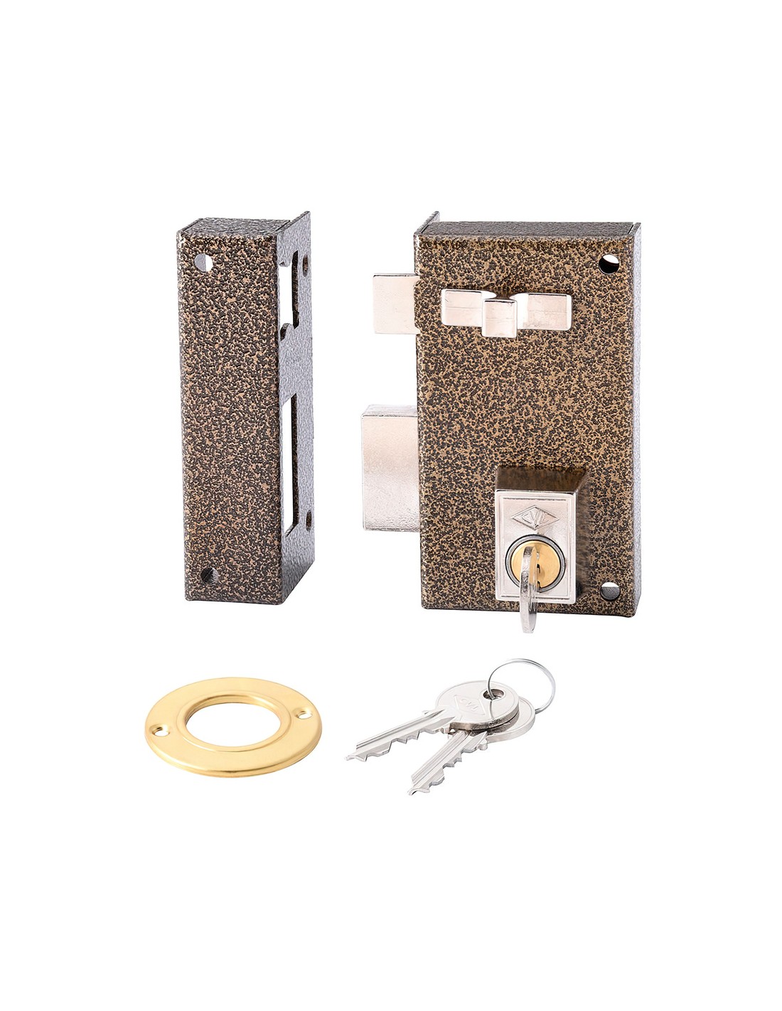 Cerradura Cvl 156a/60/he izquierda. - Cerradura de sobreponer. - Picaporte accionado por llave exteriormente y con llave y tirador desde el interior. - Cilindro redondo 5156/50.