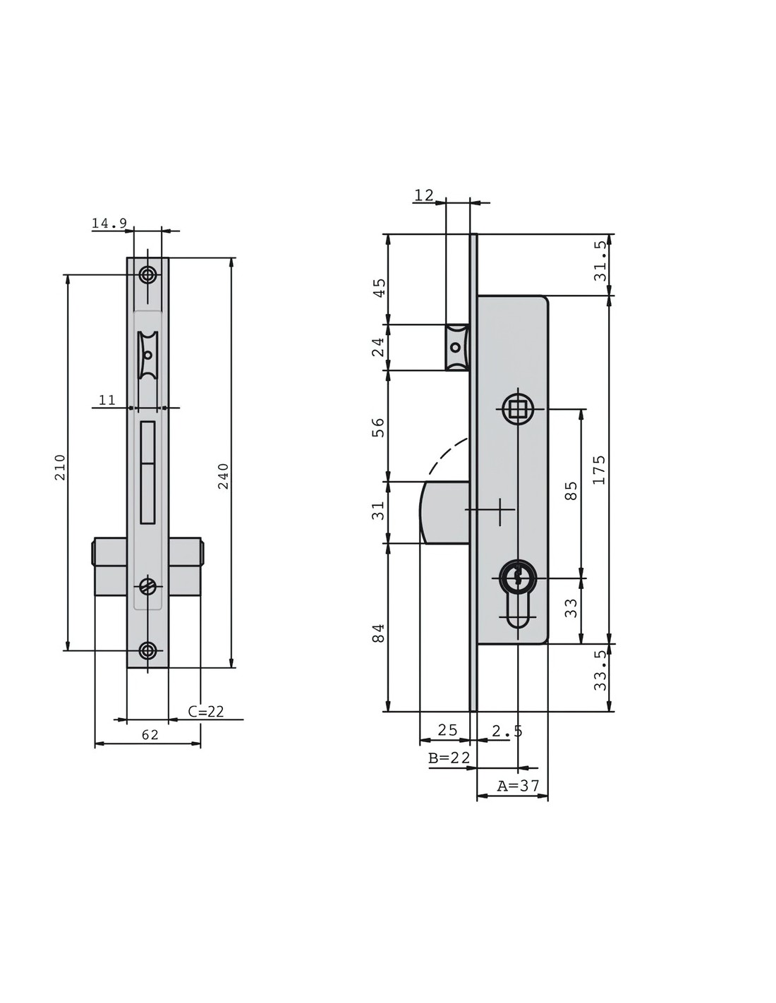 Cerradura Cvl 196/30/6an carpintería aluminio.