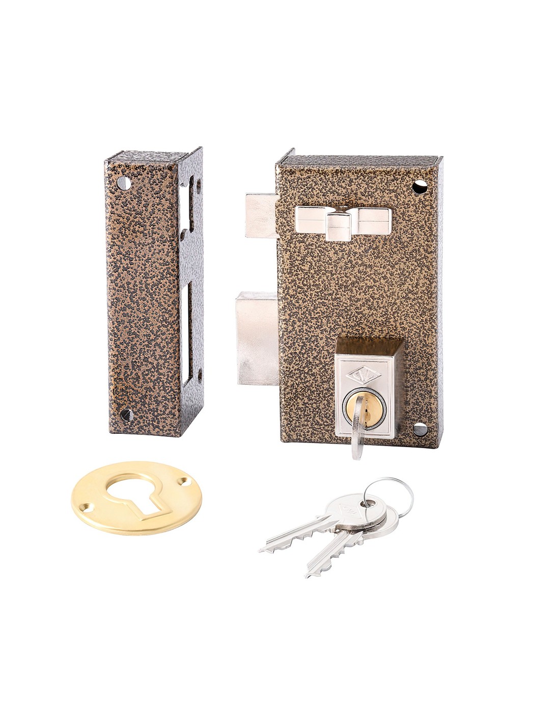 Cerradura Cvl 56a/60/he izquierda. - Cerradura de sobreponer. - Picaporte accionado por llave exteriormente y con llave y tirador desde el interior. - Cilindro perfil 5056/50.