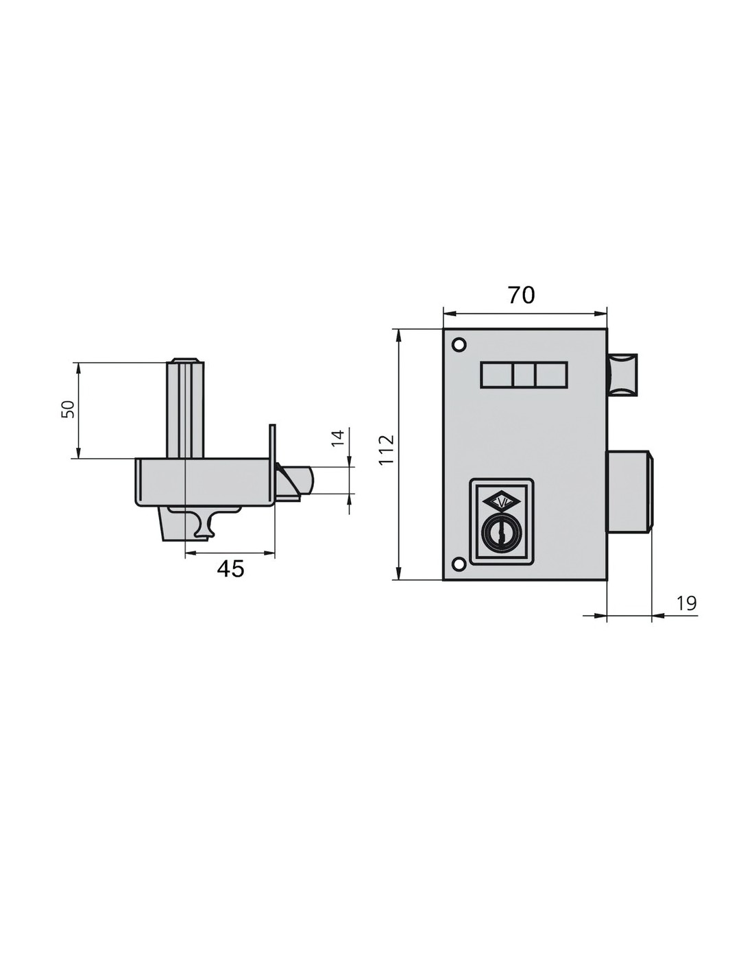 Cerradura Cvl 56a/70/he derecha. - Cerradura de sobreponer. - Picaporte accionado por llave exteriormente y con llave y tirador desde el interior. - Cilindro perfil 5056/50.