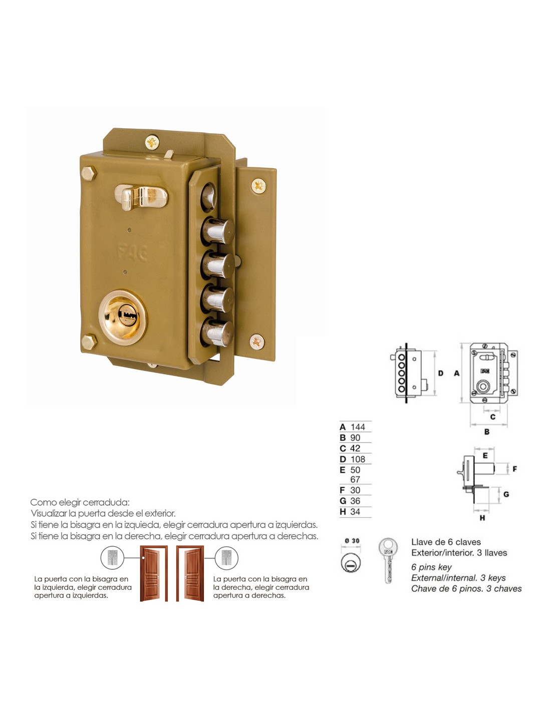 Cerradura Fac S 90 P Pintada Derecha Bombin 70