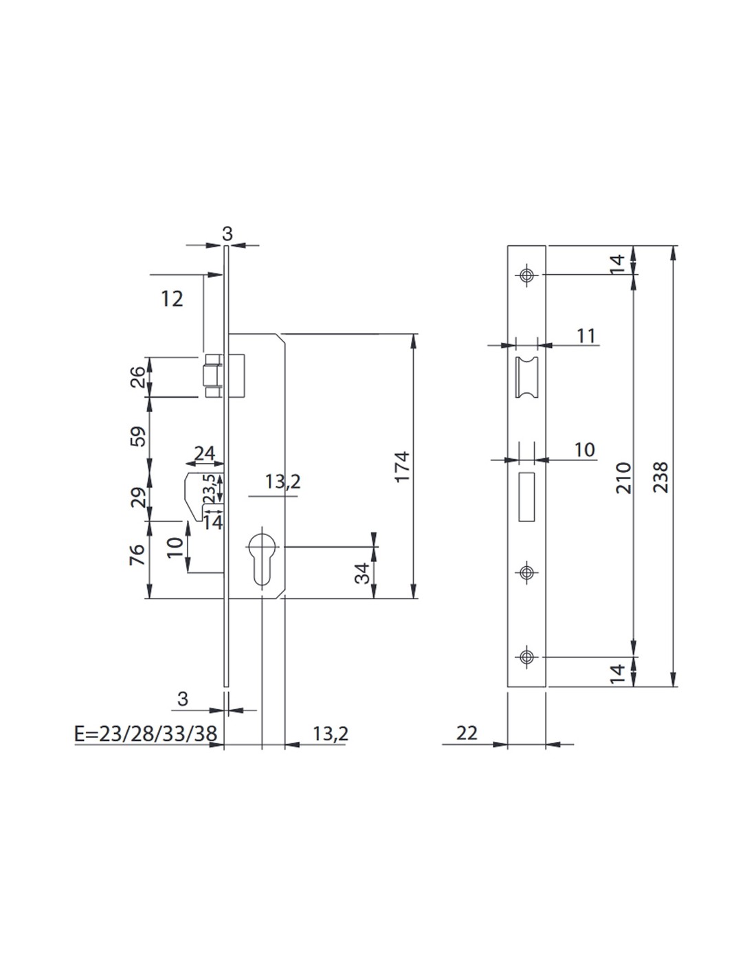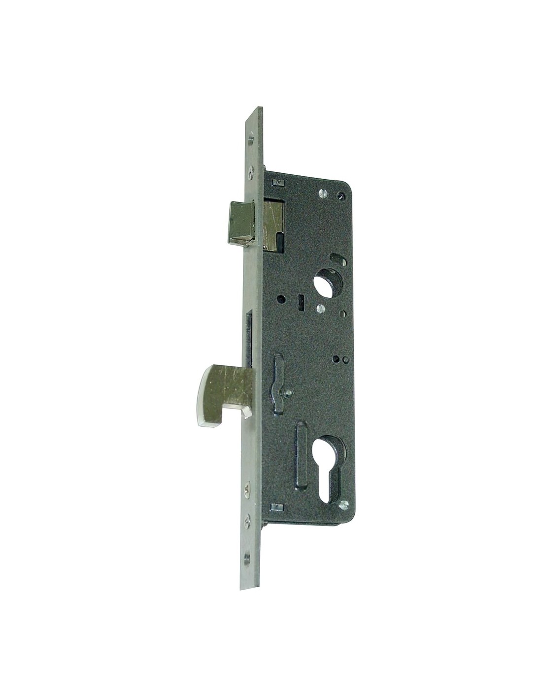 Cerradura Iseo 741540. - Con rodillo. - Cerradura de embutir para carpinteria de aluminio. - Rodillo regulable. - Con gancho. - Leva corta. - Frente de cromo de 22 x 3 mm.