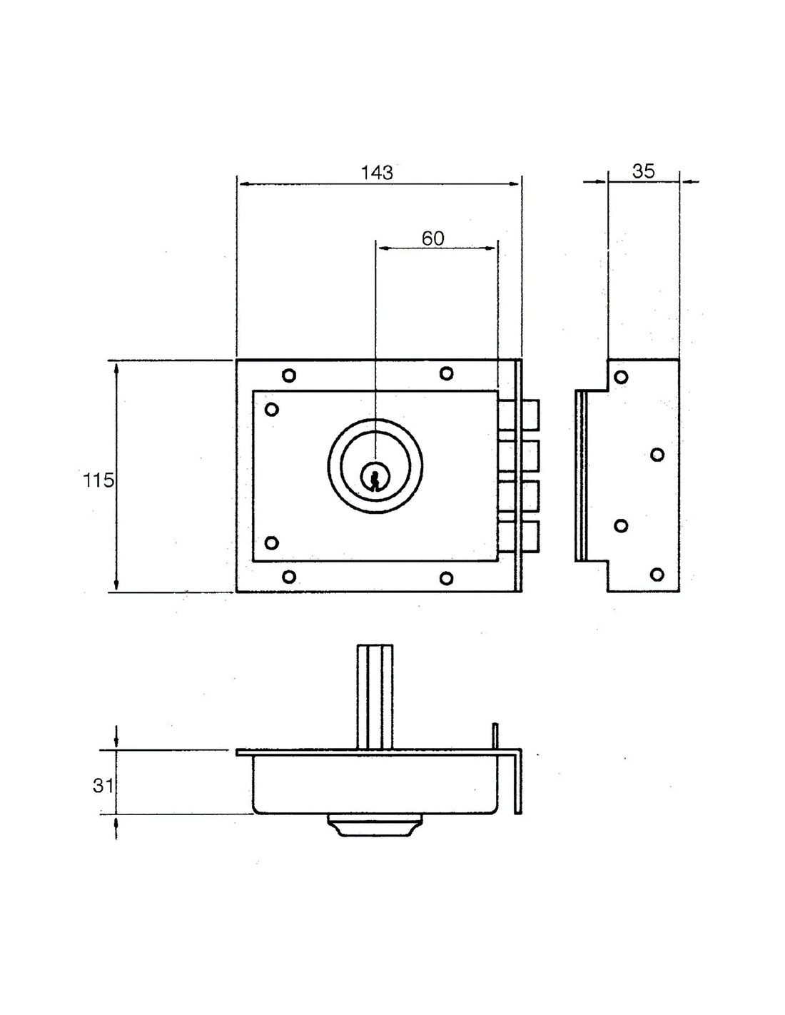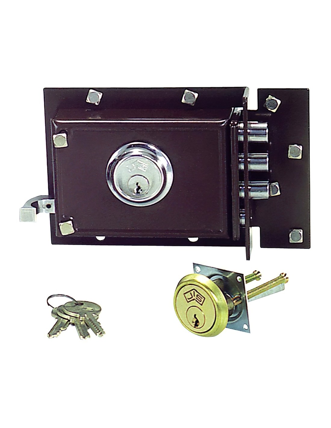 Cerradura Jis 229 8x12. - Cilindro graduable. - Sistema contrapalanca. - Picaporte con tirador y pasador de bulones. - Sentido de apertura: derecha. - Cilindro redondo.