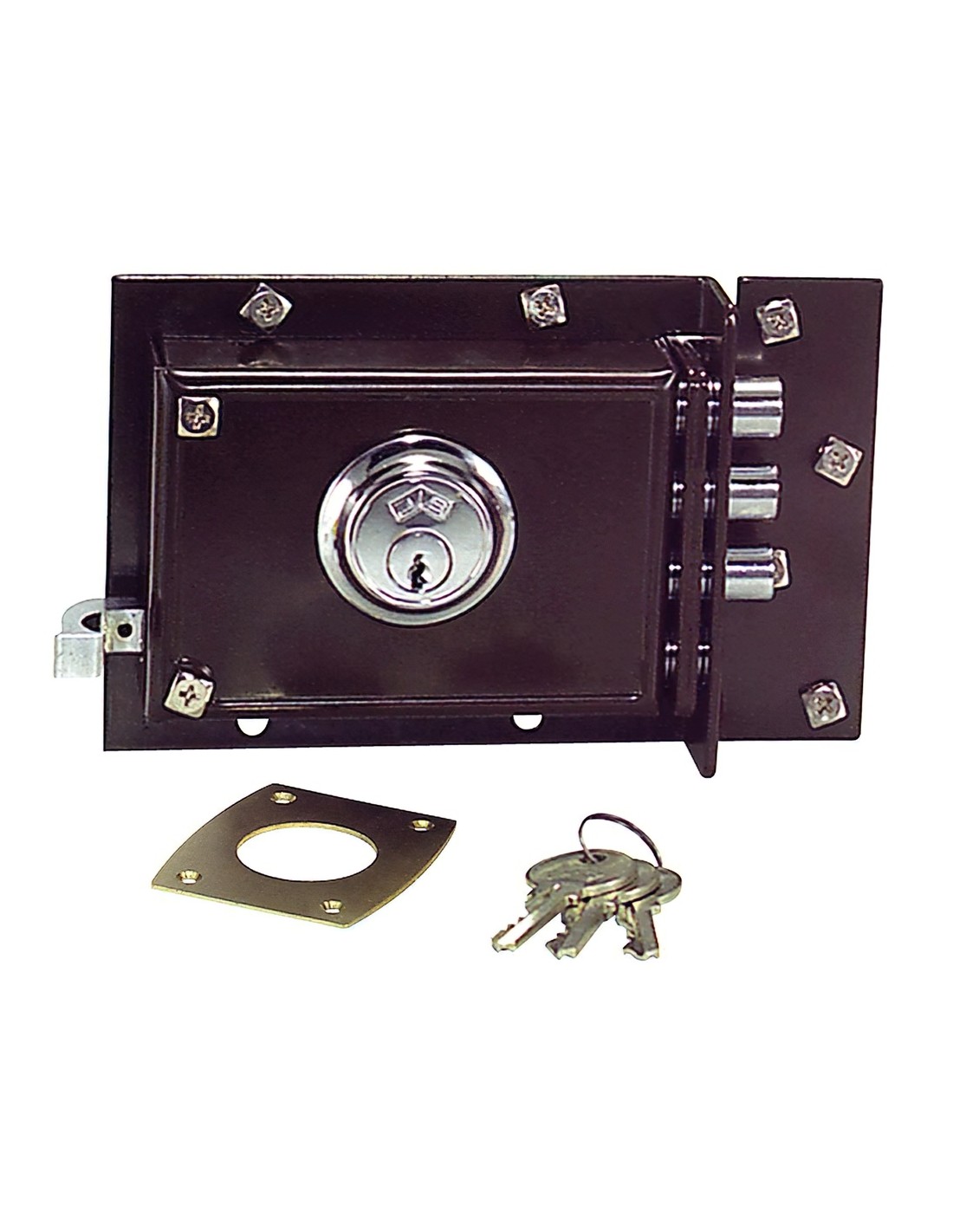 Cerradura Jis 231 8x12. - Cilindro fijo. - Sistema contrapalanca. - Picaporte con tirador con pasador de bulones. - Sentido de apertura: derecha. - Cilindro redondo.
