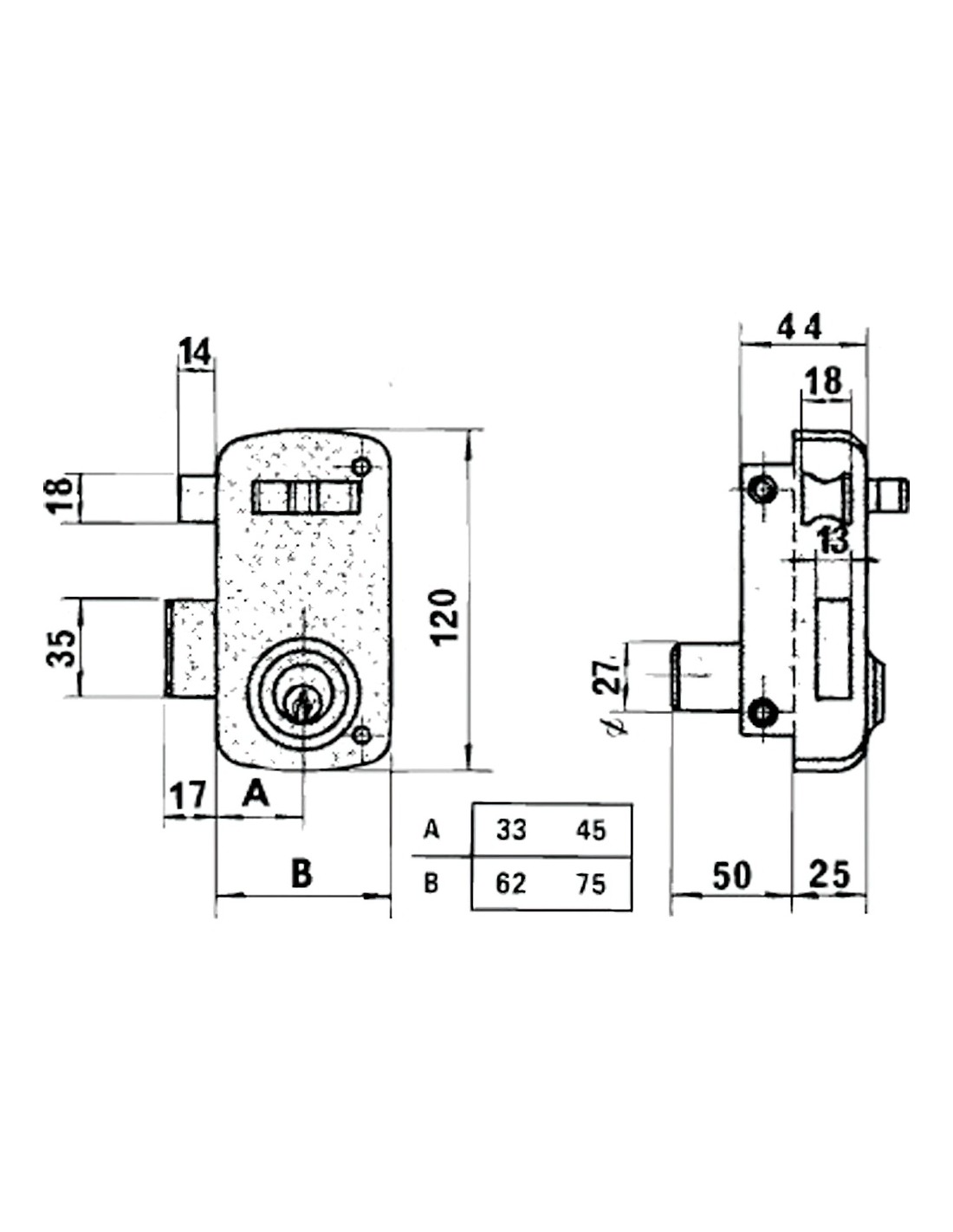 Cerradura lince 5056A-BO/ 60. - Picaporte con tirador. - Sentido apertura: izquierda. - Cerradura de sobreponer con llave de serreta. - Serie equipada con tubo de defensa giratorio / guarda mano. - Acabado Bicapa Oro