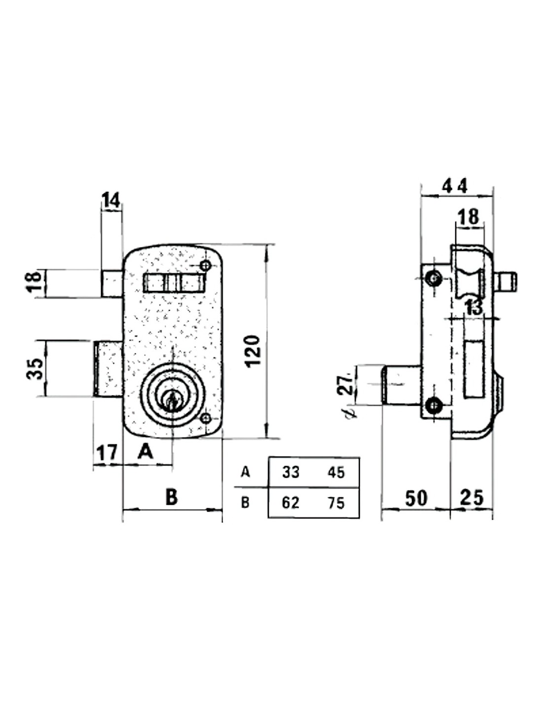 Cerradura lince 5056A-BO/ 70. - Picaporte con tirador. - Sentido apertura: izquierda. - Cerradura de sobreponer con llave de serreta. - Serie equipada con tubo de defensa giratorio / guarda mano. - Acabado Bicapa Oro