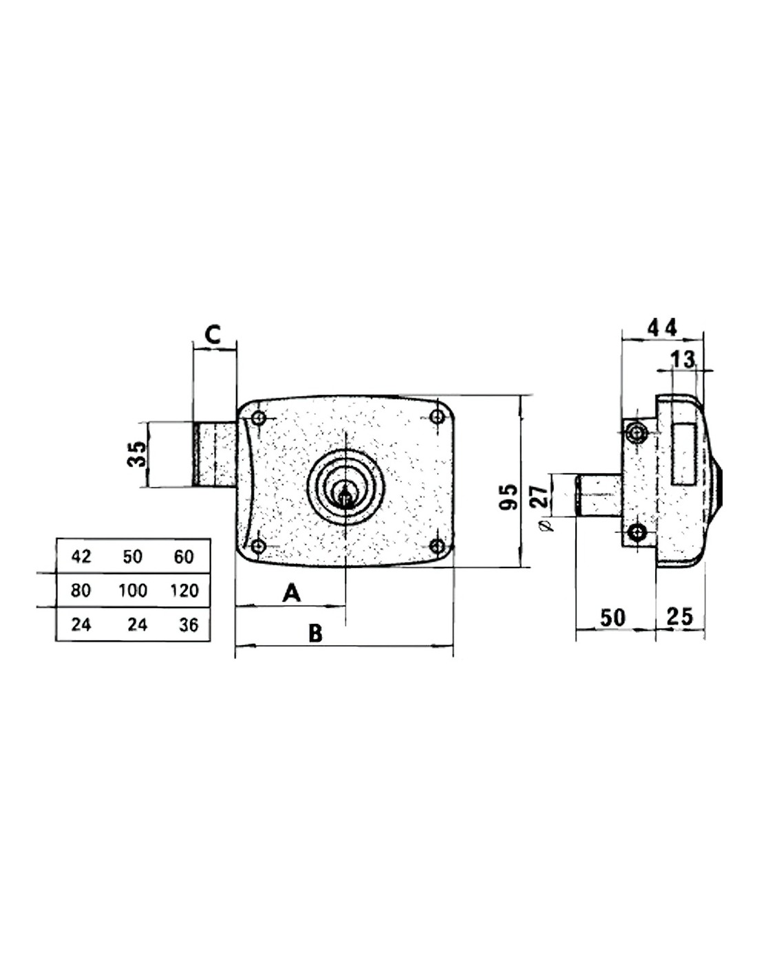 Cerradura Lince 5125A-BO/ 80 izquierda. - Cerradura de sobreponer. - Sentido de apertura: izquierda - Palanca a dos vueltas. - Picaporte con tirador. - Acabado Bicapa Oro