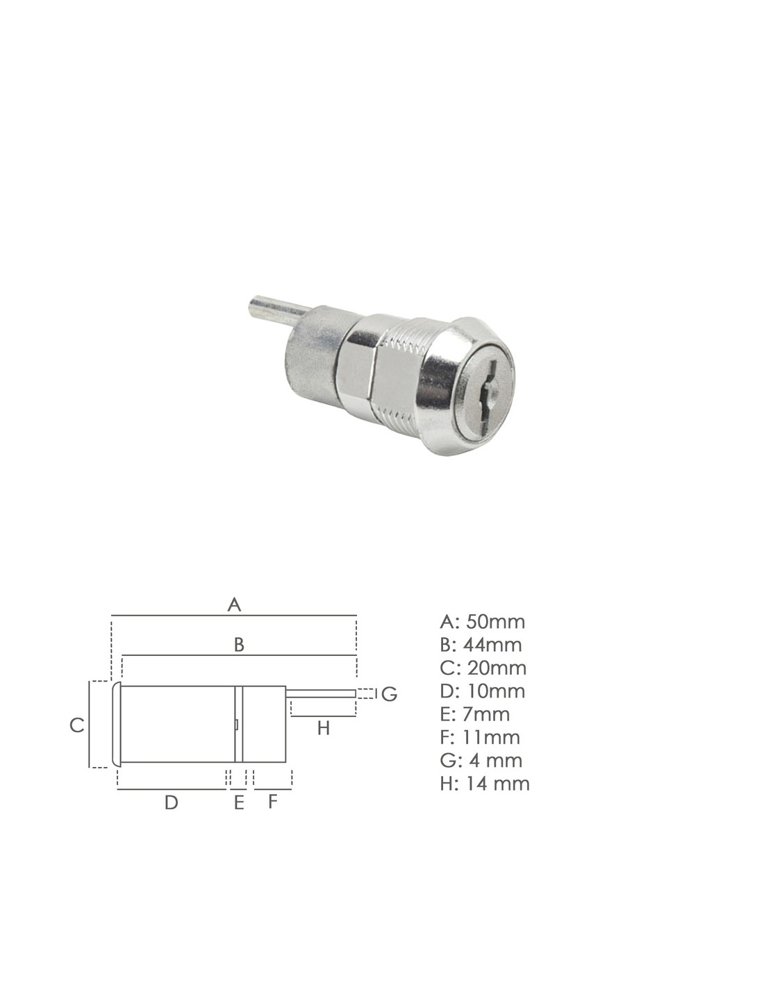 Cerradura Mueble Para Cajon Llave Excentrica 336 mm. Cromada