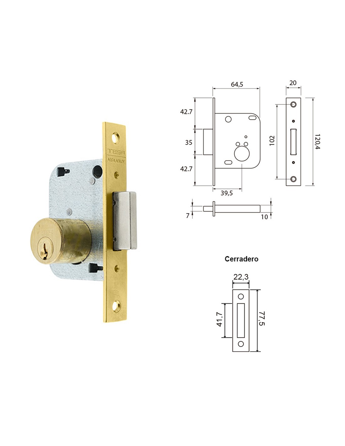- Cerradura serie 2001 de embutir para puertas de madera.