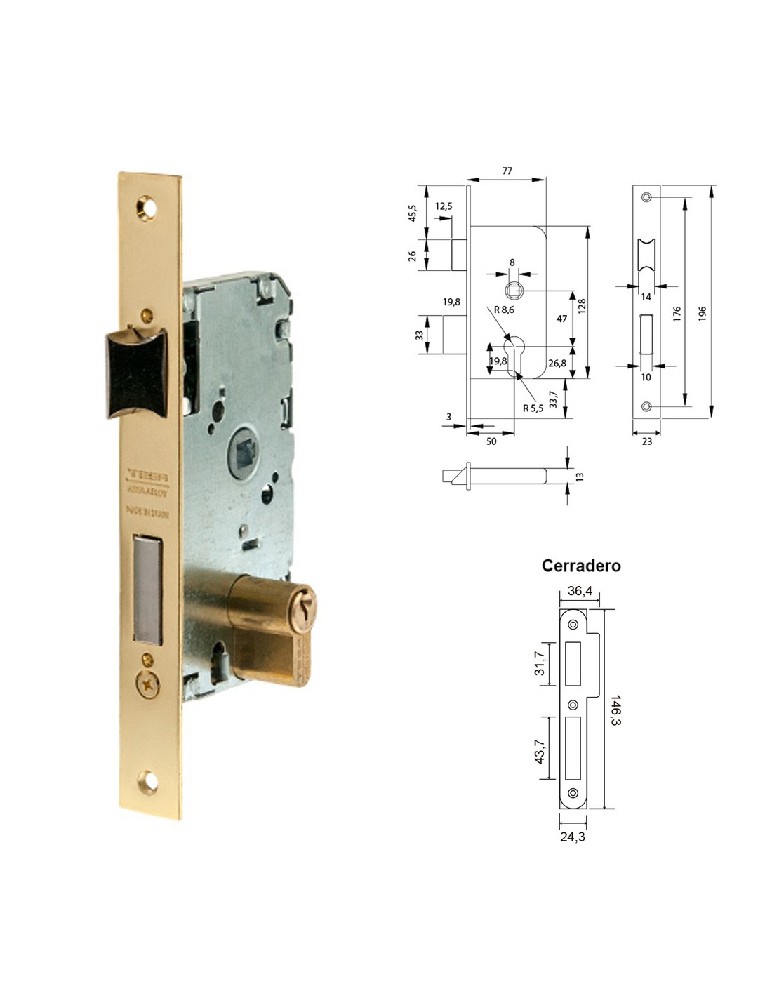 - Cerradura de embutir serie 2010 para puertas de madera.