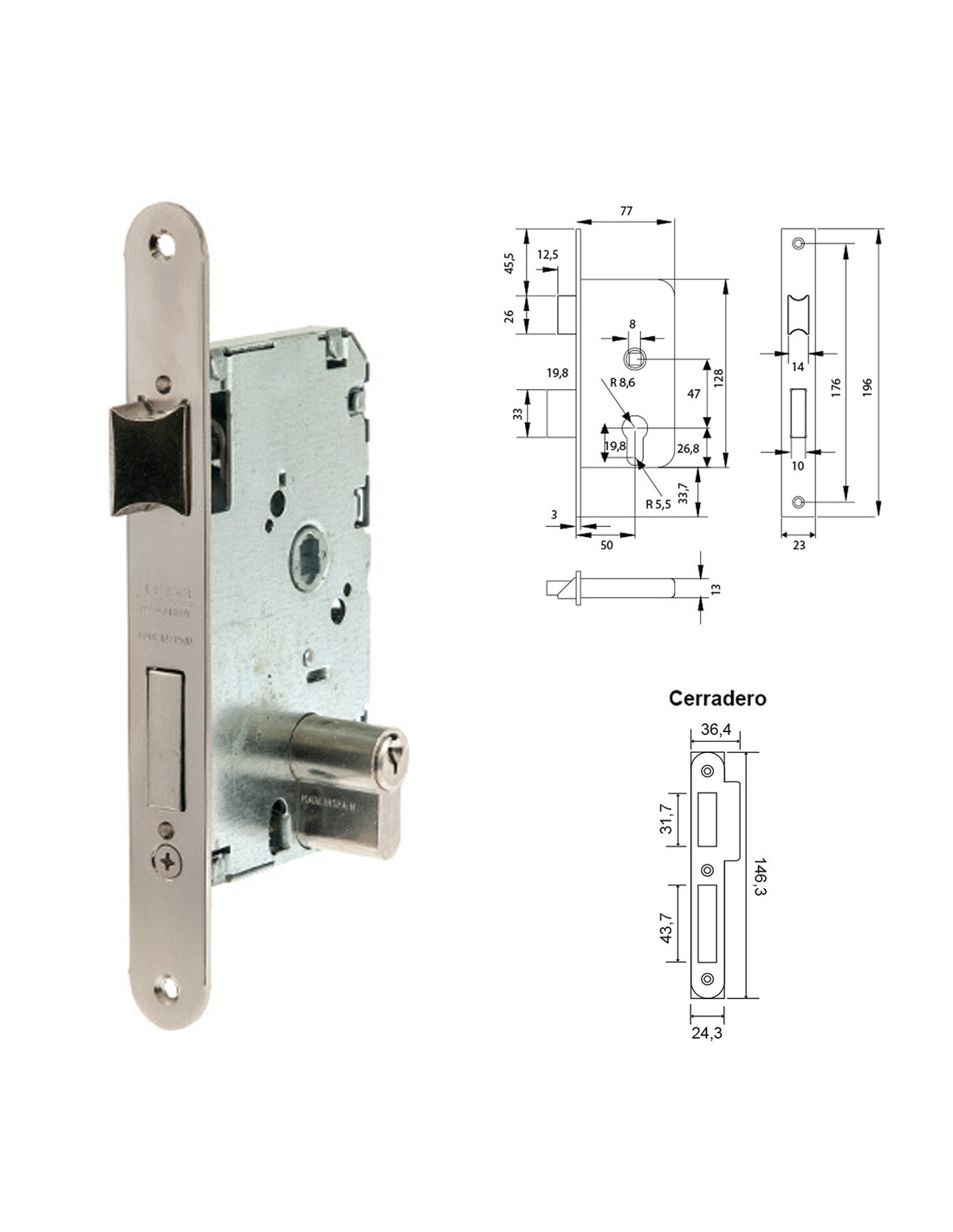 - Cerradura de embutir serie 2010 para puertas de madera.