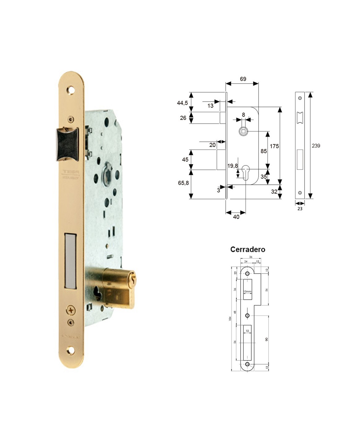 Cerradura Tesa 2030-hl/40 Canto Redondo