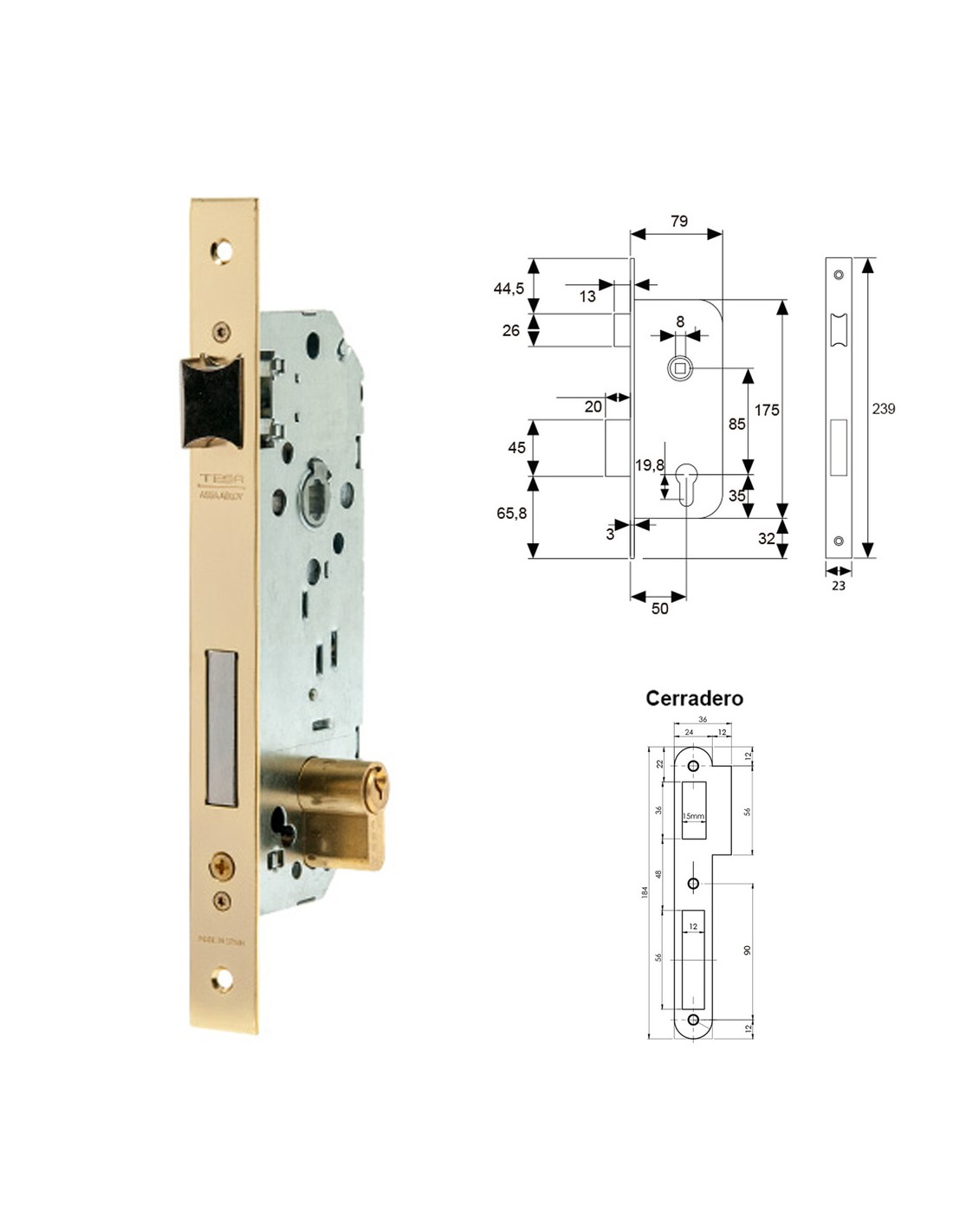 - Cerradura de embutir serie 2030 para puertas de madera.