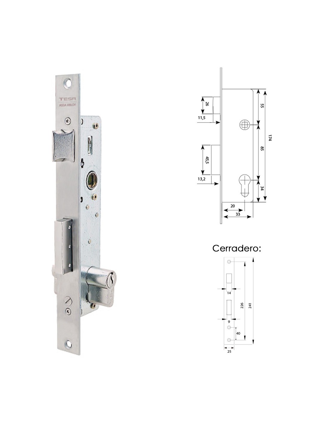 Cerradura Tesa 2210/28/ai sin gancho.
