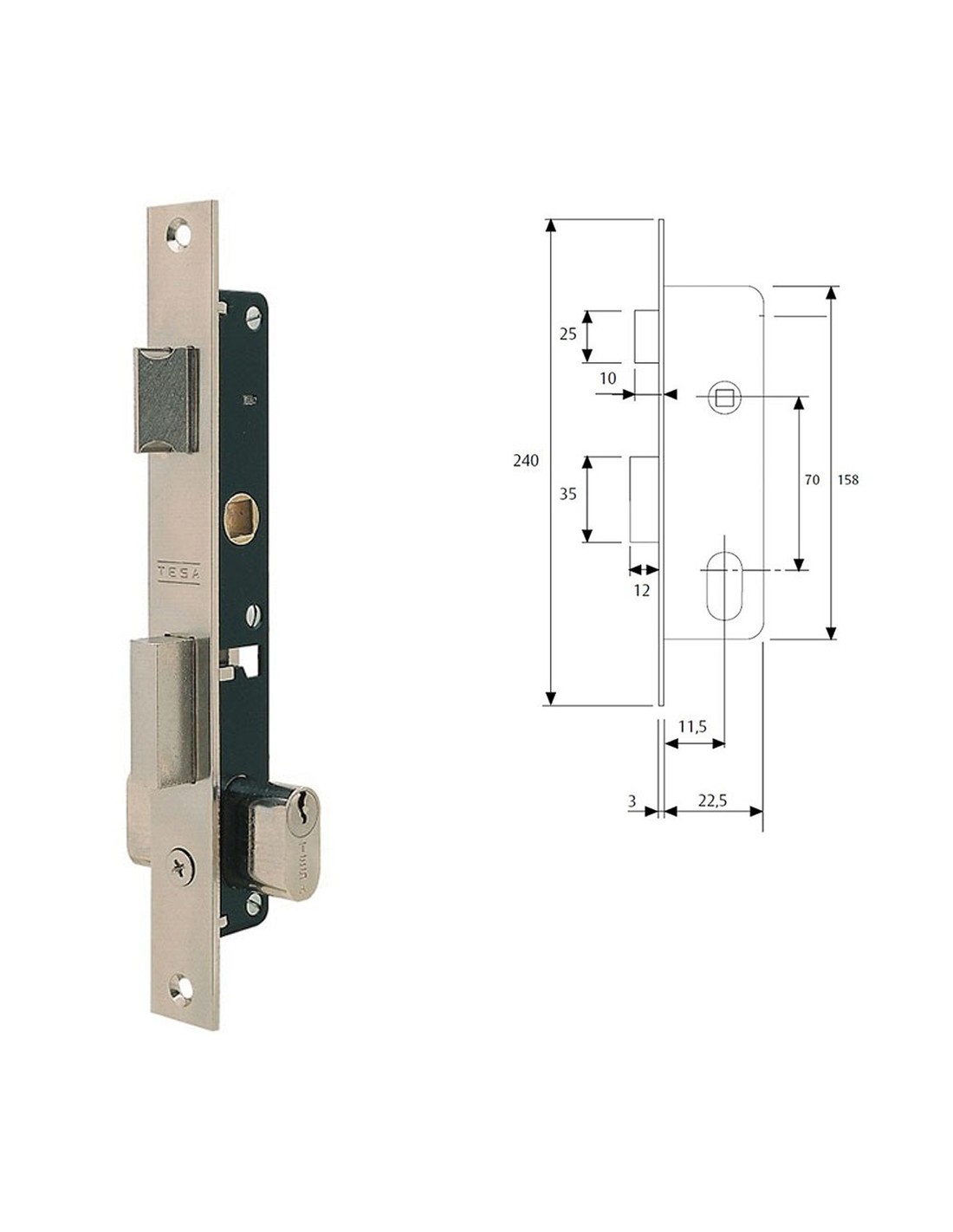 - Cerradura ideal para perfiles de hierro, entrada 11, 5 mm.