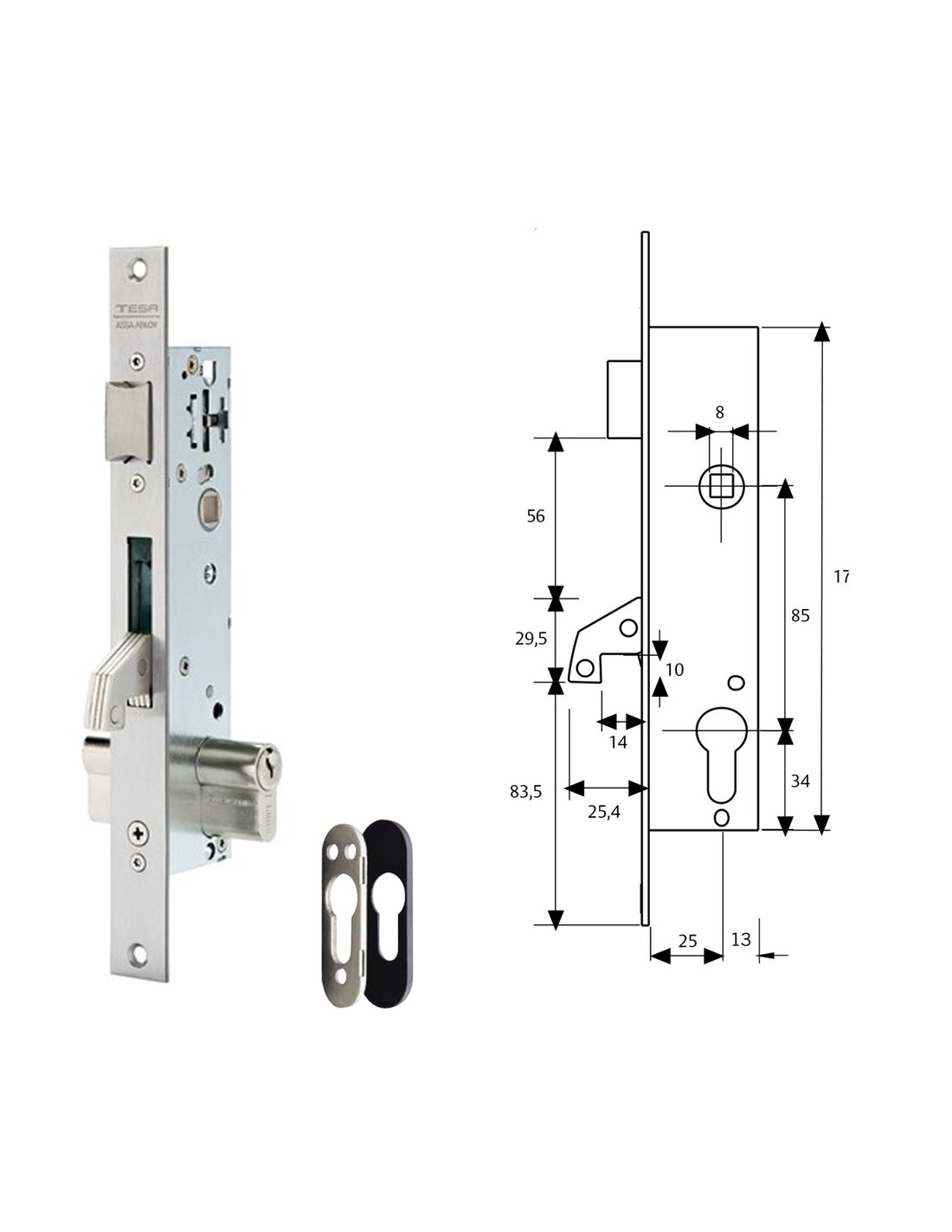 Cerradura Tesa 2240/25/3NI Con Escudo de Seguridad E190 con Palanca Basculante Gancho Reforzado