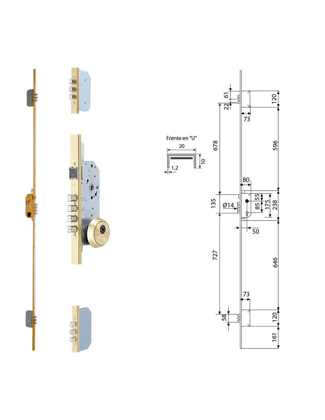 Cerradura Tesa Seguridad T2B3 54566 LE Cerradero Largo 45 HE