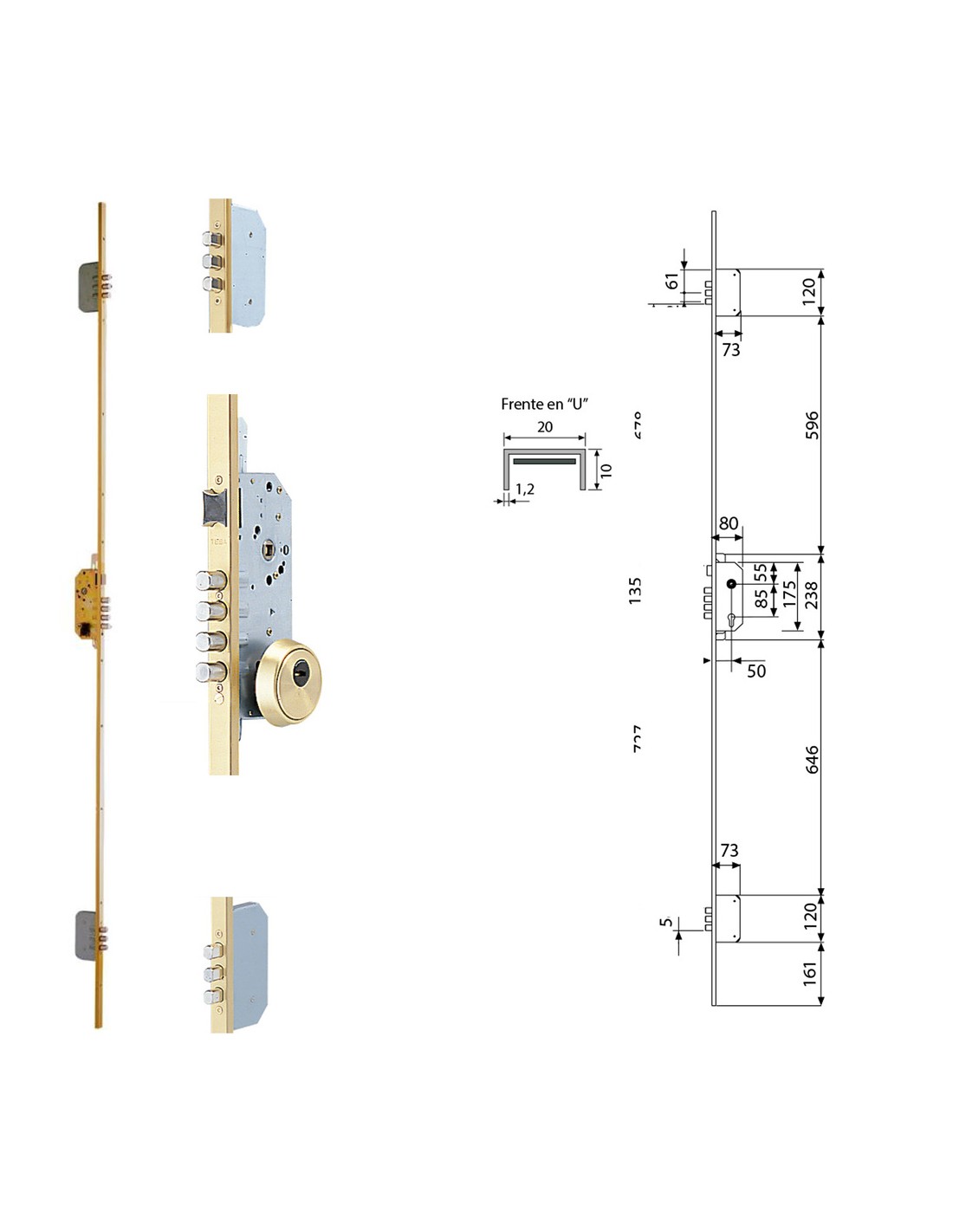 - Frente de la cerradura estándar de 20x10 mm.