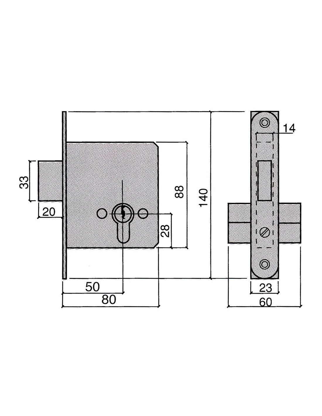 Cerradura Ucem 5300-hl 50. - Medida: 50 mm. - Cerradura de embutir. - Acabado hierro latonado. - Con picaporte y pestillo en una sola pieza reversible.