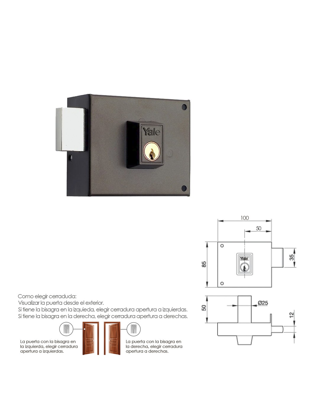 Cerradura Yale / Azbe 124-a/hp/10/izquierda. - Cerradura de sobreponer. - Cilindro exterior forjado o redondo de 25 mm. de diámetro - Con doble cilindro y palanca a dos vueltas. - Sentido de apertura: izquierda. - Acabado Pintado