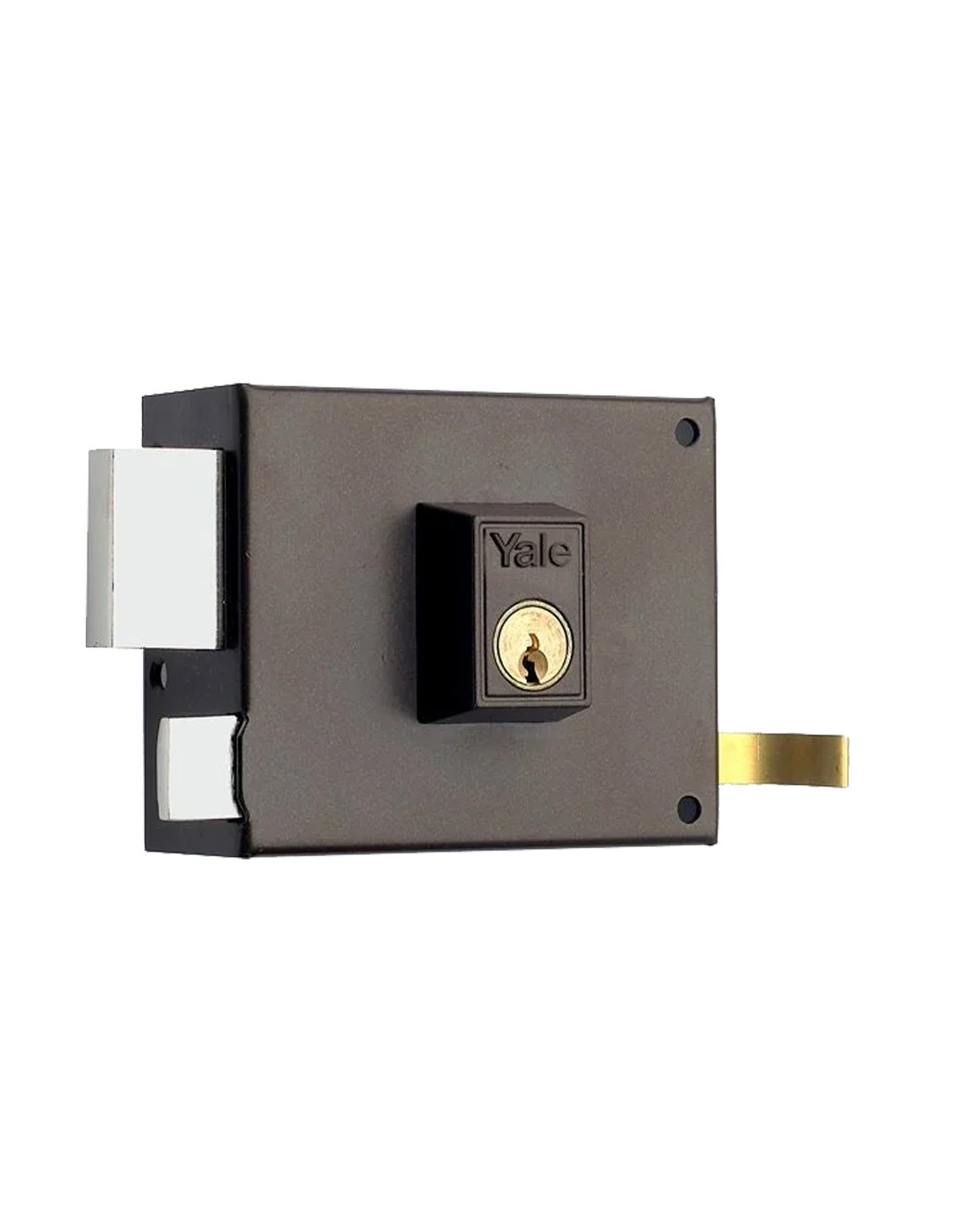 Cerradura Yale / Azbe 125-a/hpr/10/izquierda. - Cerradura de sobreponer con doble cilindro. - Cilindro exterior forjado o redondo de 25 mm. de diámetro - Picaporte con tirador y palanca a dos vueltas. - Sentido de apertura: izquierda. - Acabado Pintado