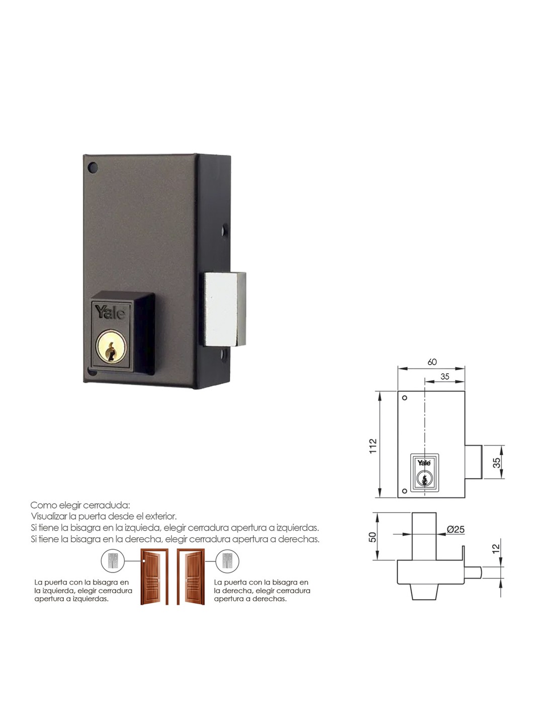 Cerradura Yale 56-c/hpr/60/ Derecha
