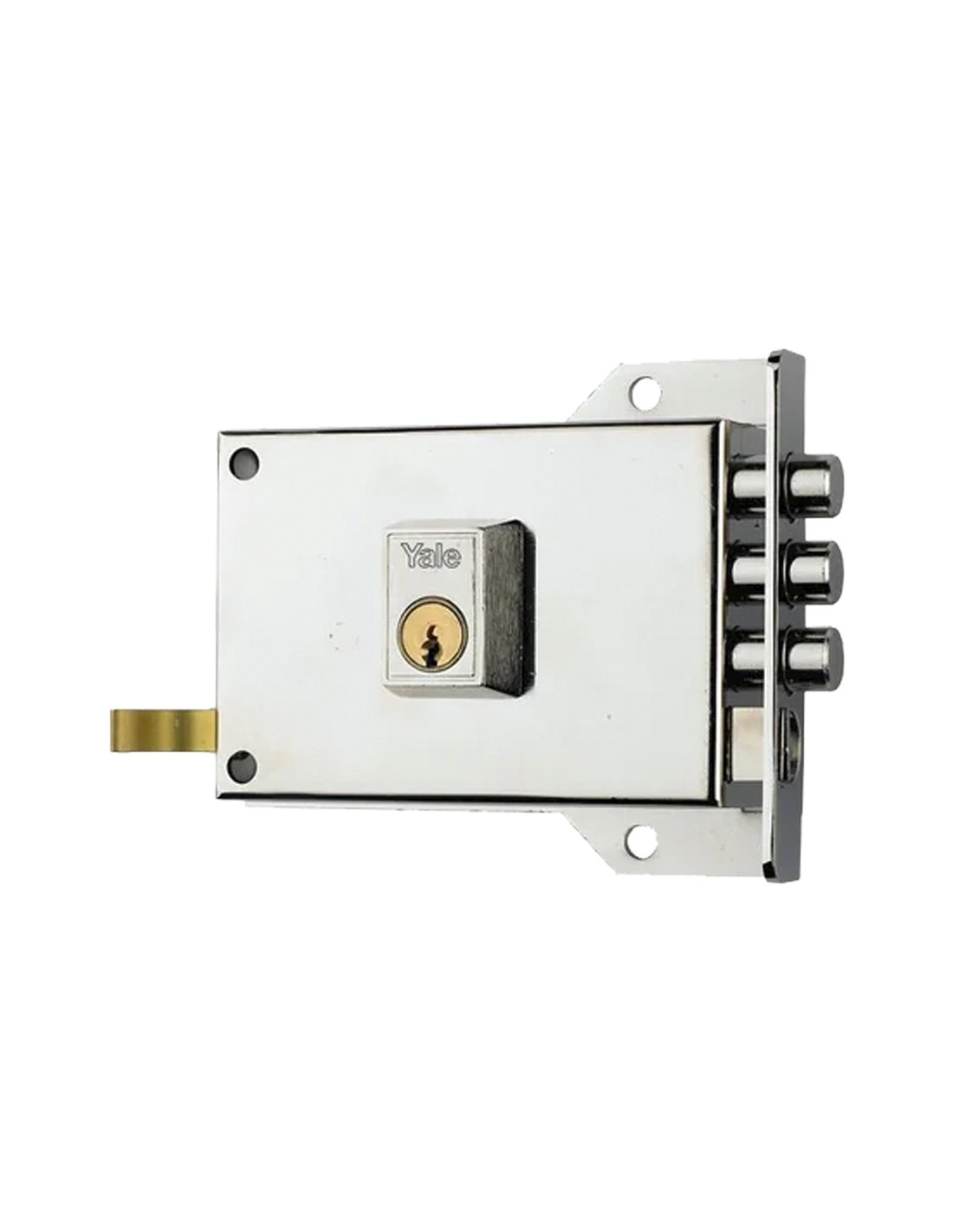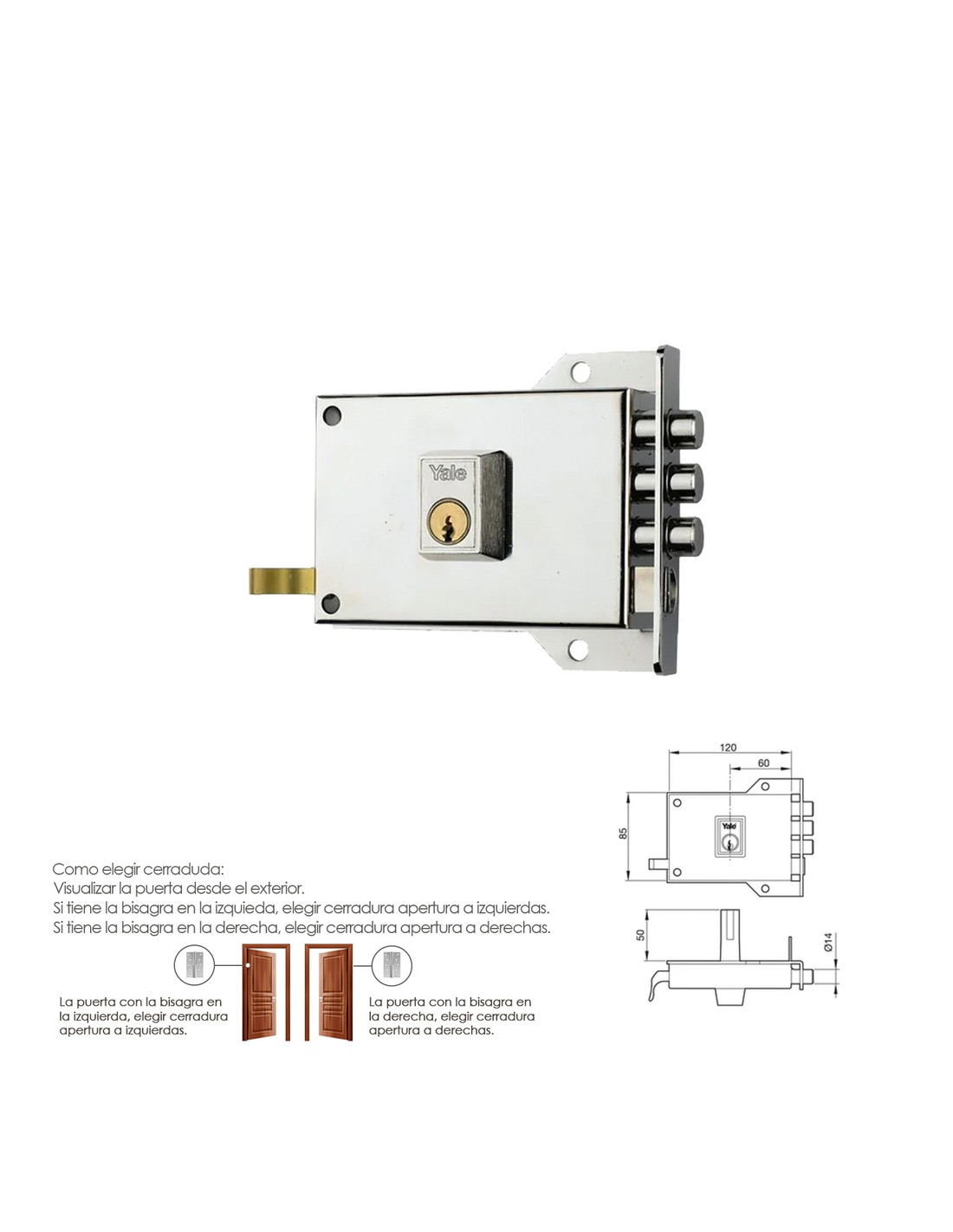 Cerradura Yale / Azbe 7-hn/ derecha. - Cerradura de sobreponer con sistema antipalanca. - Cilindro exterior forjado, redondo, YL6 y HSK - Doble cilindro. - Picaporte con tirador y triple palanca a dos vueltas. - Sentido de apertura: derecha. - Acabado en Niquel