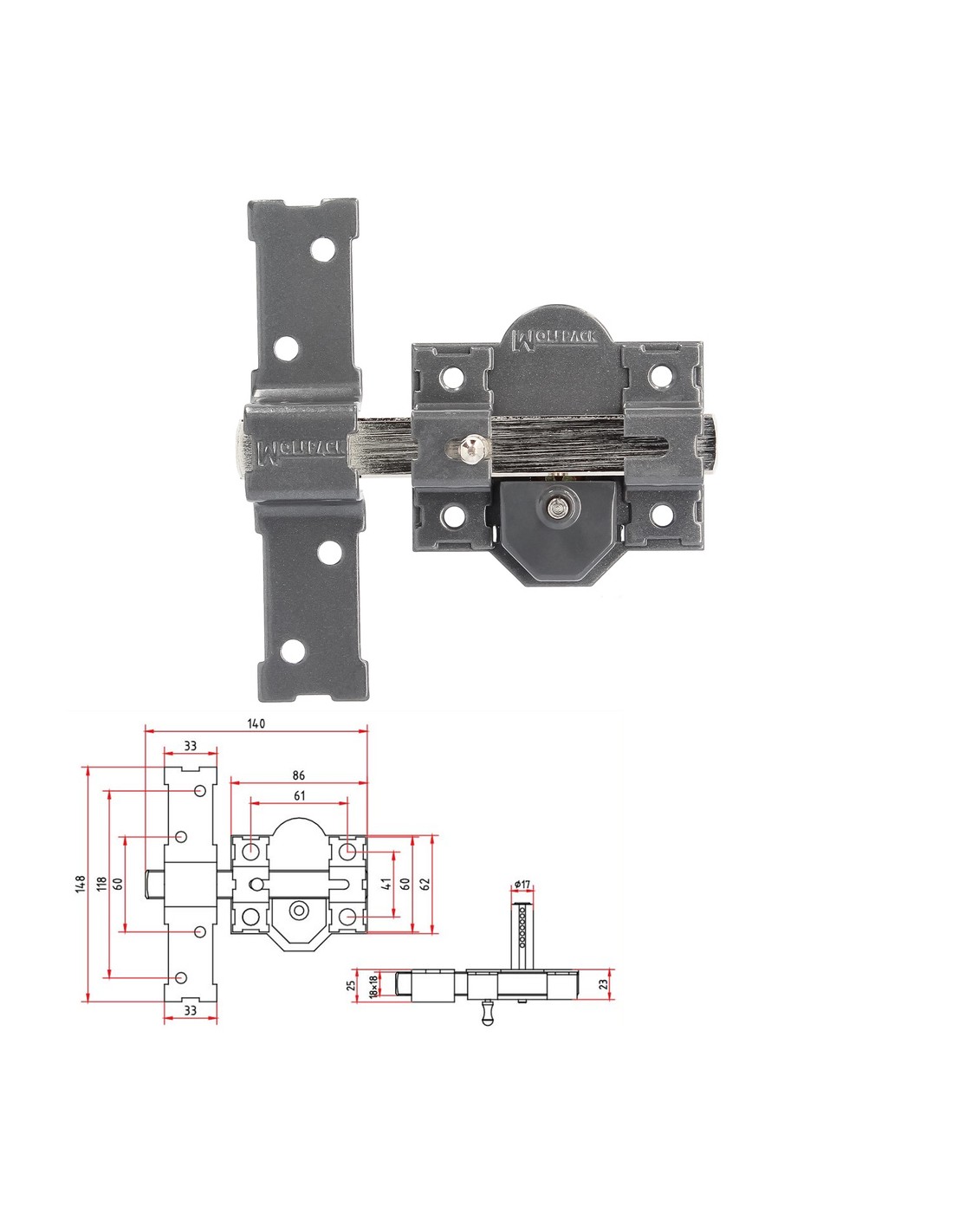 Cerrojo Wolfpack b-7. - Cerrojo con llave y pulsador. - Pasador de 143 mm. realizado en acero. - Cilindro europerfil. - Valido para apertura a izquierda y a derecha. - Cilindro de pera de 50mm - Llave compatible para copiar Fac-11D.