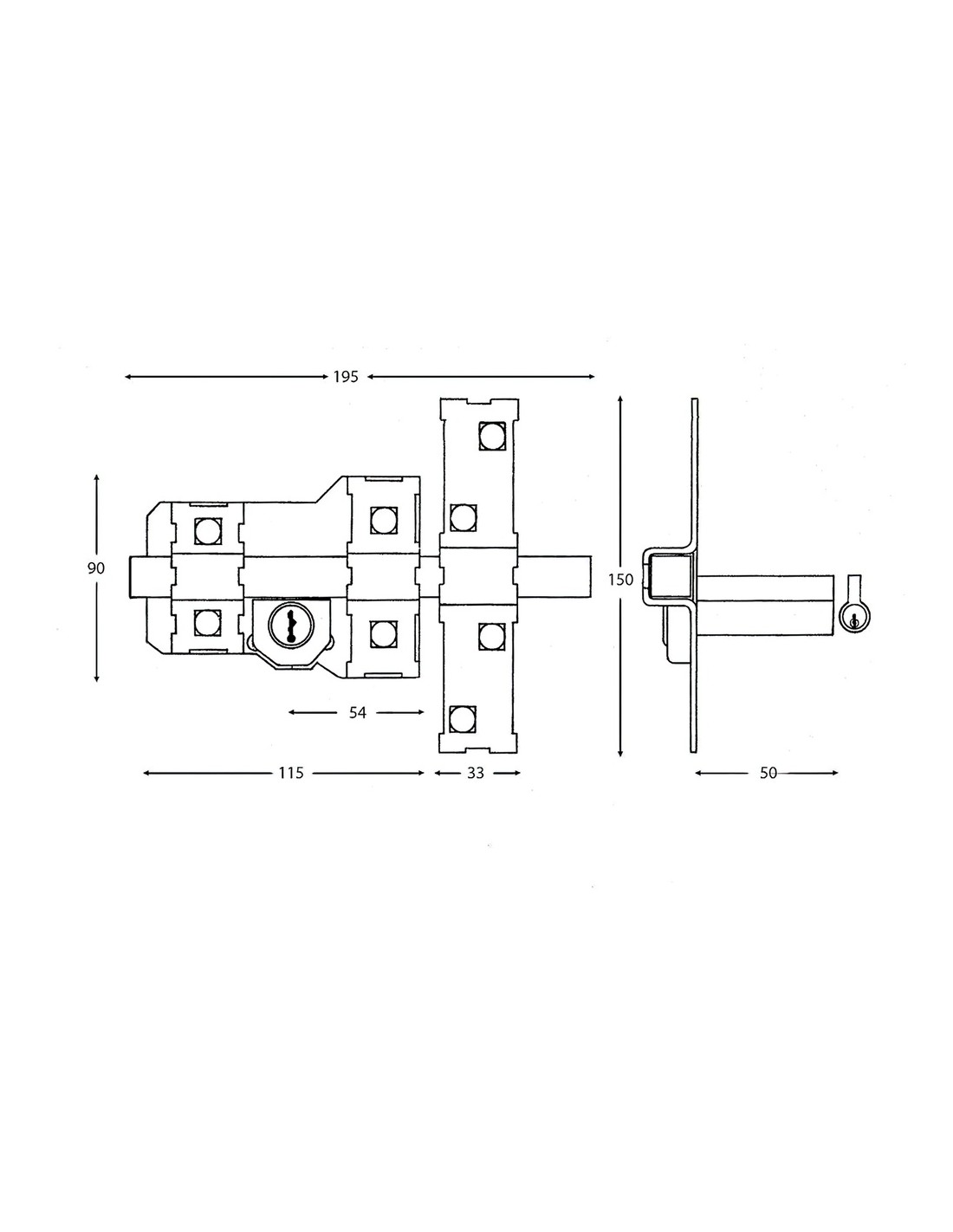 - Se acciona interior y exteriormente con llave, quedando siempre la barra fija.