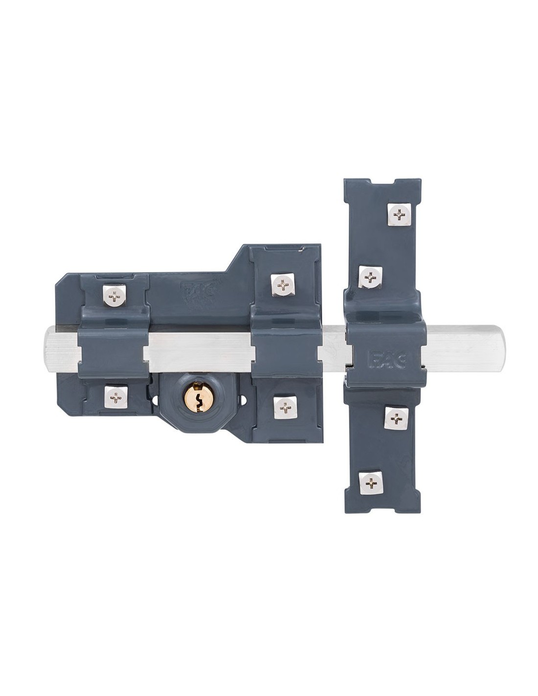 - Se acciona interior y exteriormente con llave, quedando siempre la barra fija.