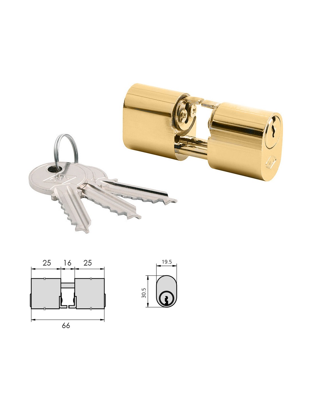 Cilindro CVL 5968 / 25x25 / Laton Pulido Ovalado Levas y Vastagos Cilindro Doble