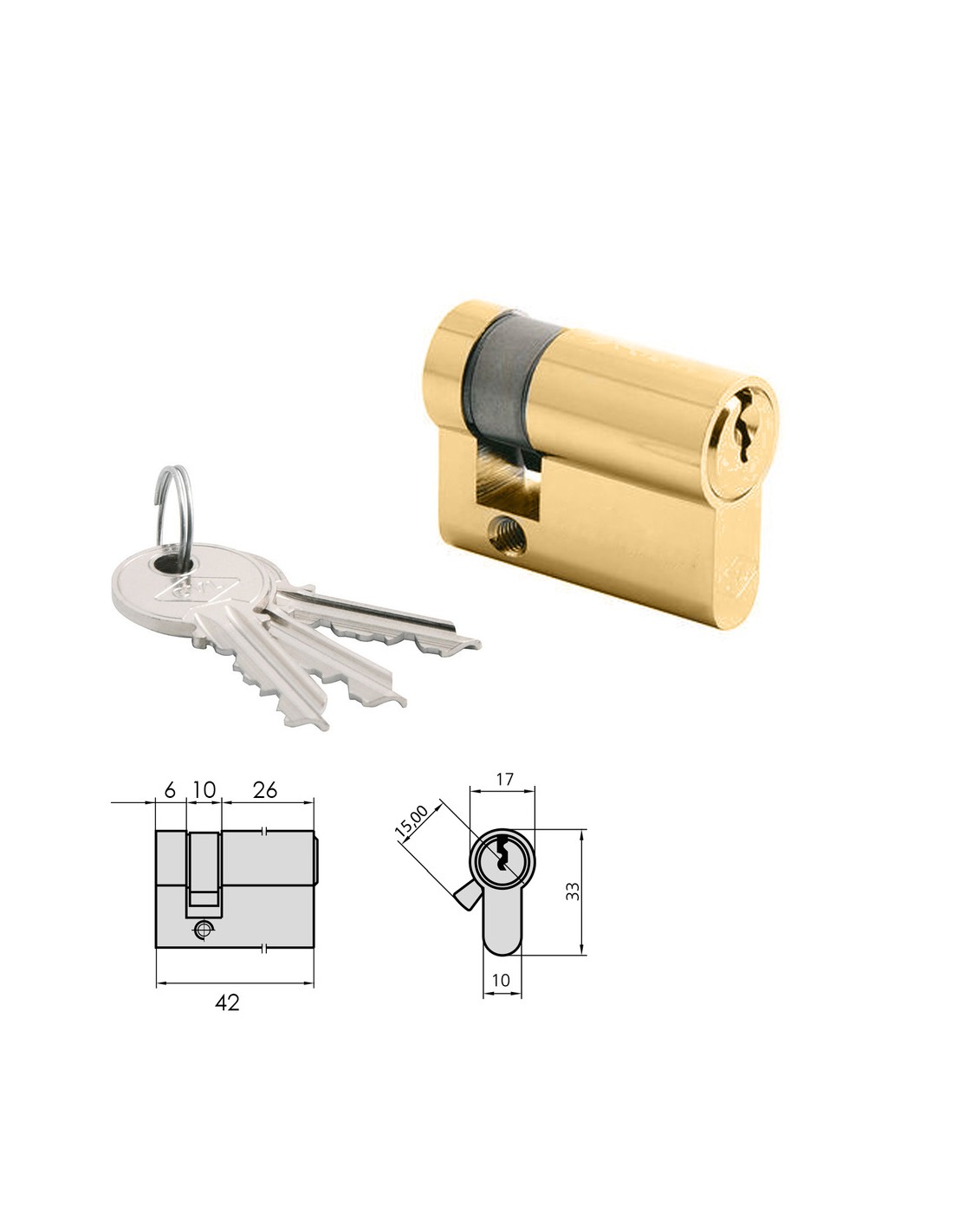 Cilindro CVL 5982T / 26x42 Laton Pulido Leva Larga 1/2 Cilindro