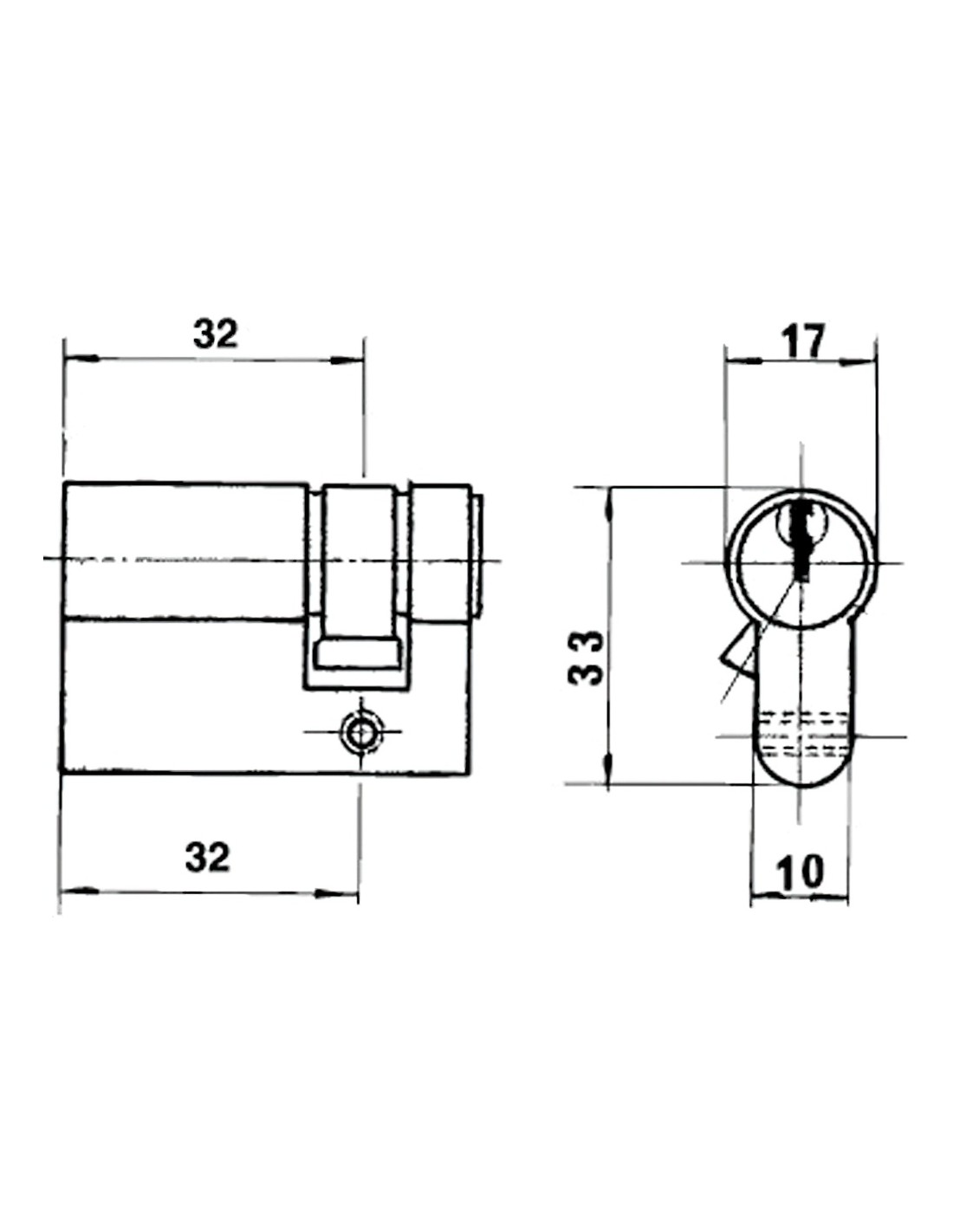 Cilindro Lince europerfil 1/2 0180/30 mm. - Medio cilindro. - Latonado. - Longitud: 30 mm. - Articulo tambien conocido como bombillo, bombín, europerfil / pera.